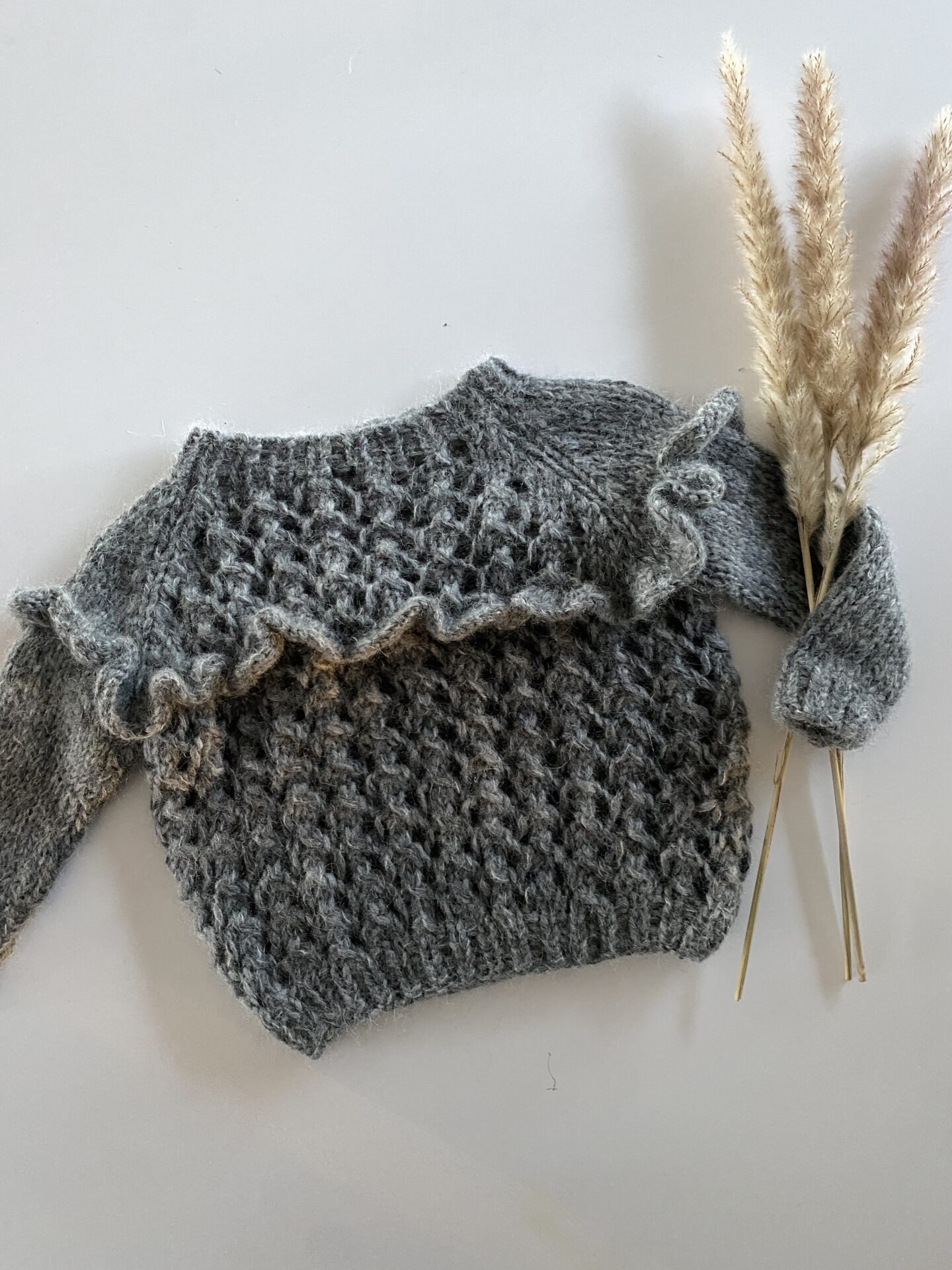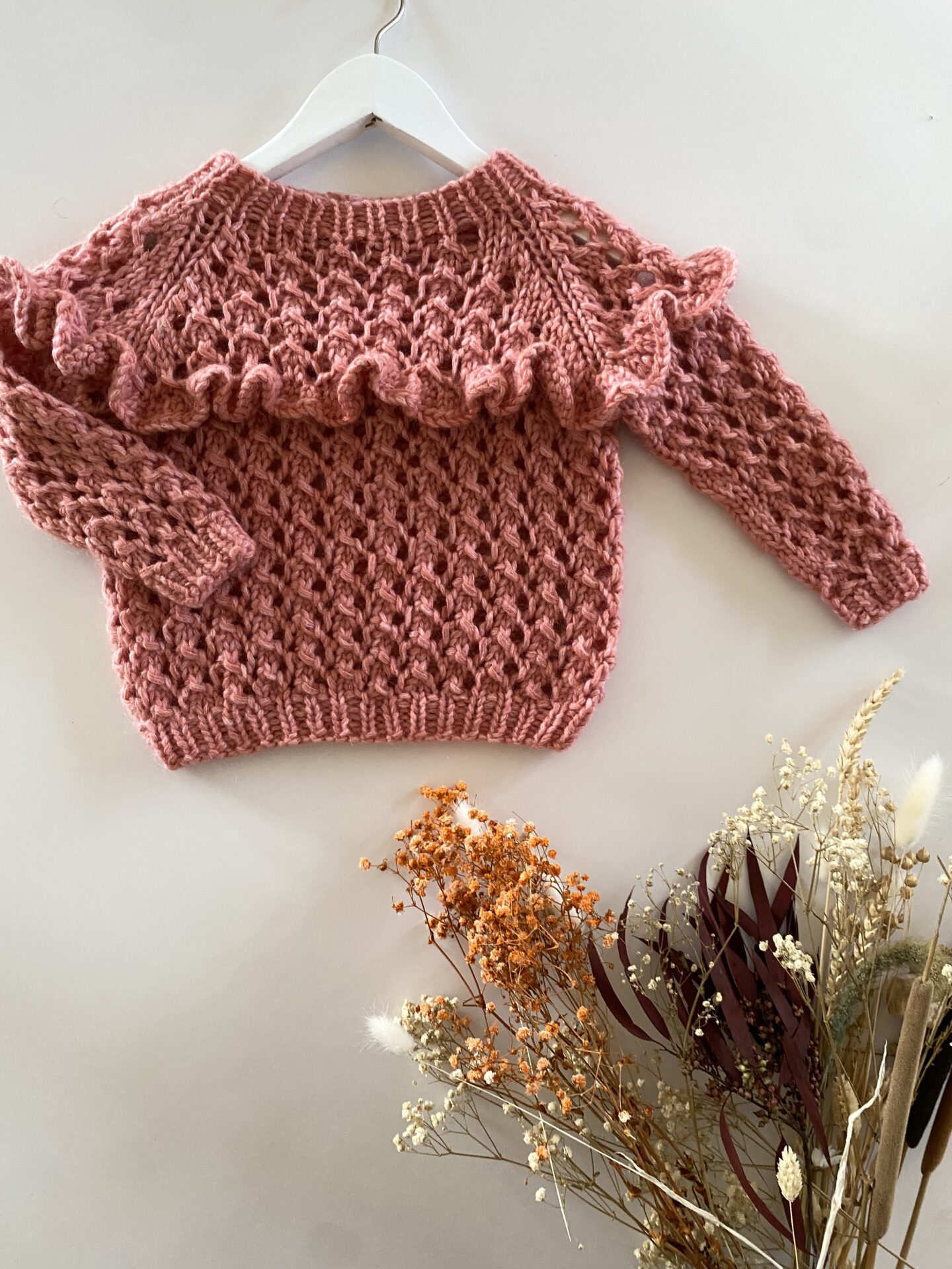Hindbær Sweater Junior fra Kracun Knitwear er en strikket sweater med fine detaljer. Sweateren findes også i en My Size udgave.