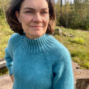 The neckline is finished with a high ribbed collar worked in 1x1 rib, folded over for extra comfort and warmth. The sleeves are of classic length, providing a balanced and elegant silhouette. Finishing details include weaving in ends, sewing underarms, and blocking to final measurements.