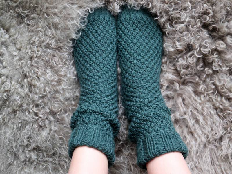 Hue-gah Socks er et par fine hyggesokker, som strikkes i uld. Strik dem til dig selv, eller til en du holder af.