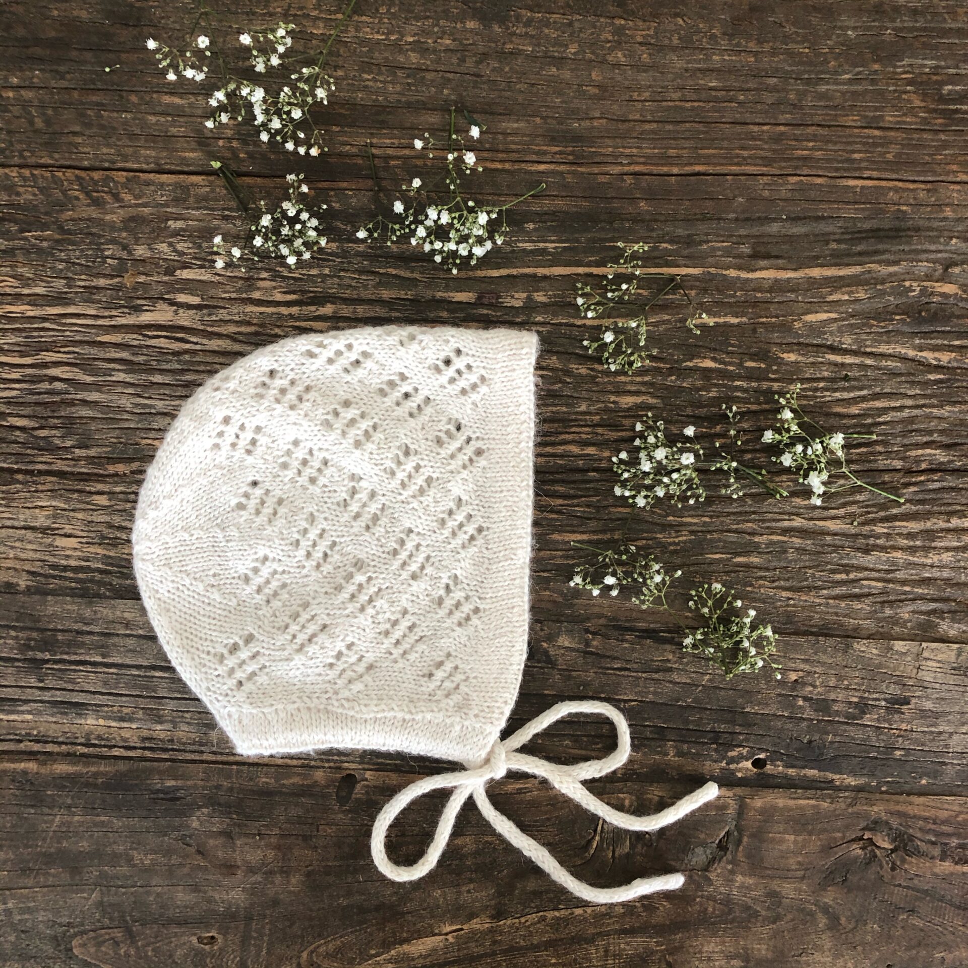 Ingrid Bonnet fra Apple Of My Eye, er en smuk strikket kyse til de helt små med et flot hulmønster.