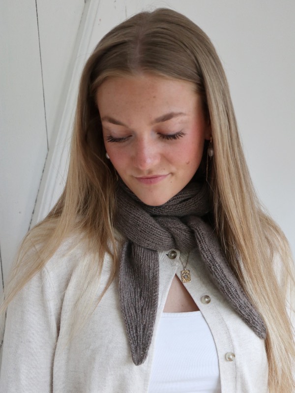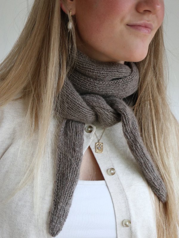 Isolde Scarf af Knitamore er et smørblødt tørklæde i et stilrent design, perfekt som charmeklud, en sløjfe i håret eller til at lune hals og nakke på en kølig dag.