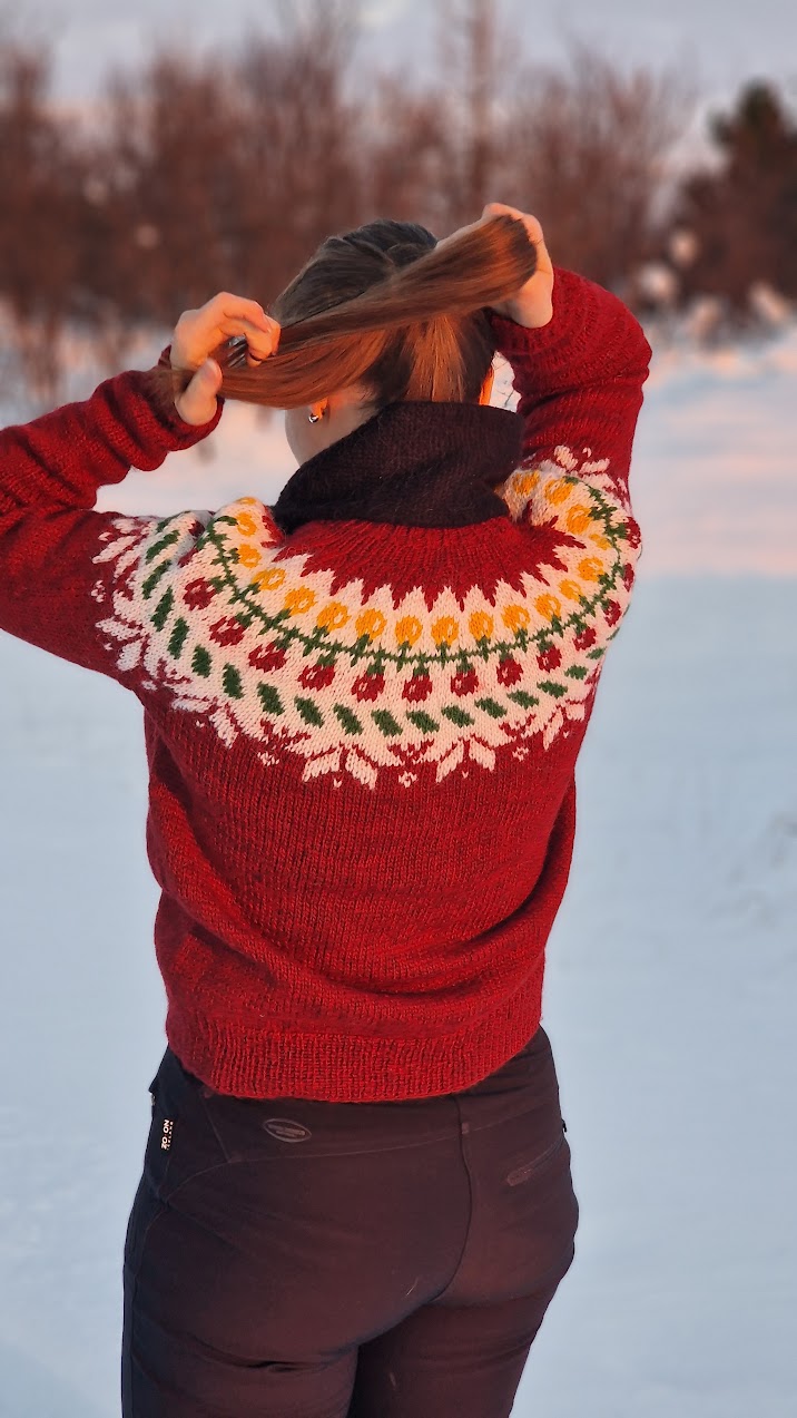 I learned to knit at age 6 and fell in love right away. Over the years I’ve mostly focused on traditional Icelandic Wool sweaters (lopapeysa). After a burnout in 2023, knitting became my therapy. I couldn't decide which patterns to knit, so I decided to try and make my own. The process made me feel alive again, and that’s why I haven't stopped since. My inspiration comes from colors, nature, and even music or memories.