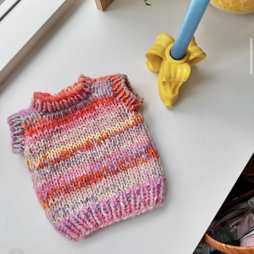 Min skabelyst startede i 2021, kort tid efter at jeg havde lært at strikke. Jeg er født med en popcornhjerne og blev derfor meget hurtigt opslugt af at omsætte egne ideér til virkelighed, og begyndte derfra at designe opskrifter af ideér der "poppede op" i mit hoved. Jeg er kæmpe stor fan af "weekendprojekter". Derudover elsker jeg at lege med nye farvekombinationer og farveskift- især med udgangspunkt i rester, jeg har liggende derhjemme i forvejen. Det er både bæredygtigt og balsam for sjælen.