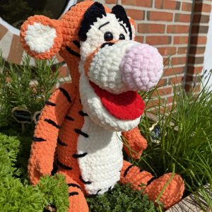 Kaninen Bianca er den fineste hæklede bamse, med sutsko og nusseklud.