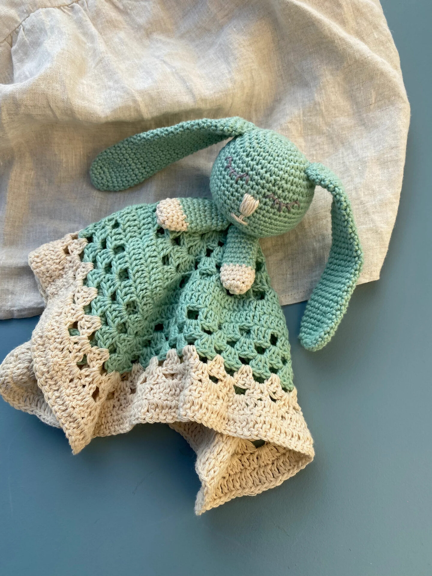 Karla Kanin Nusseklud fra Farveladeleg hækles i bomuldsgarn 8/4 på nål 3.50 mm.