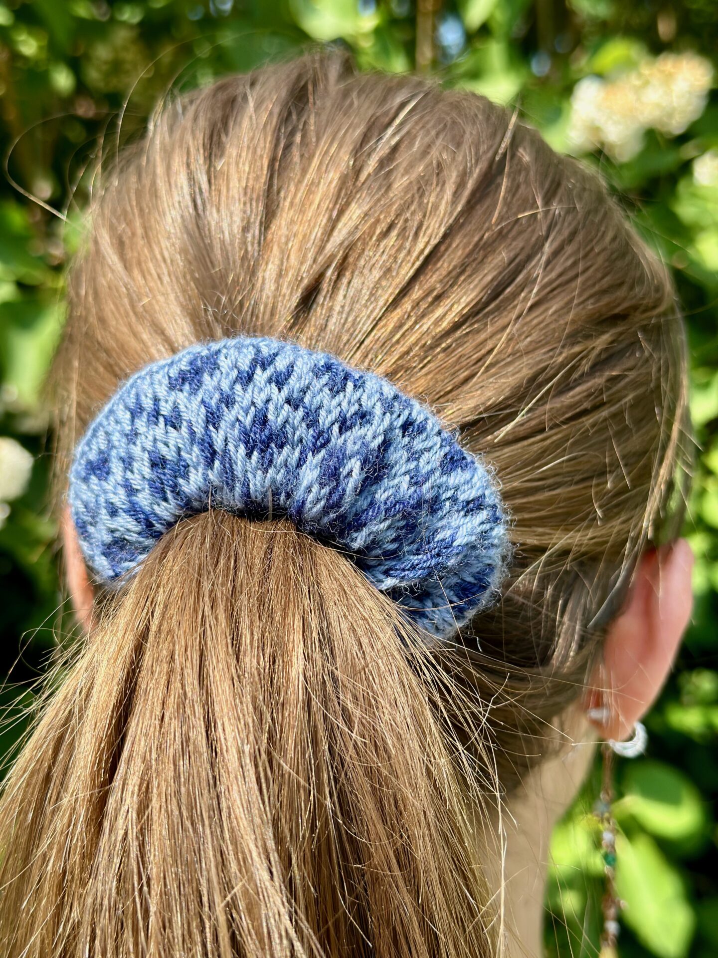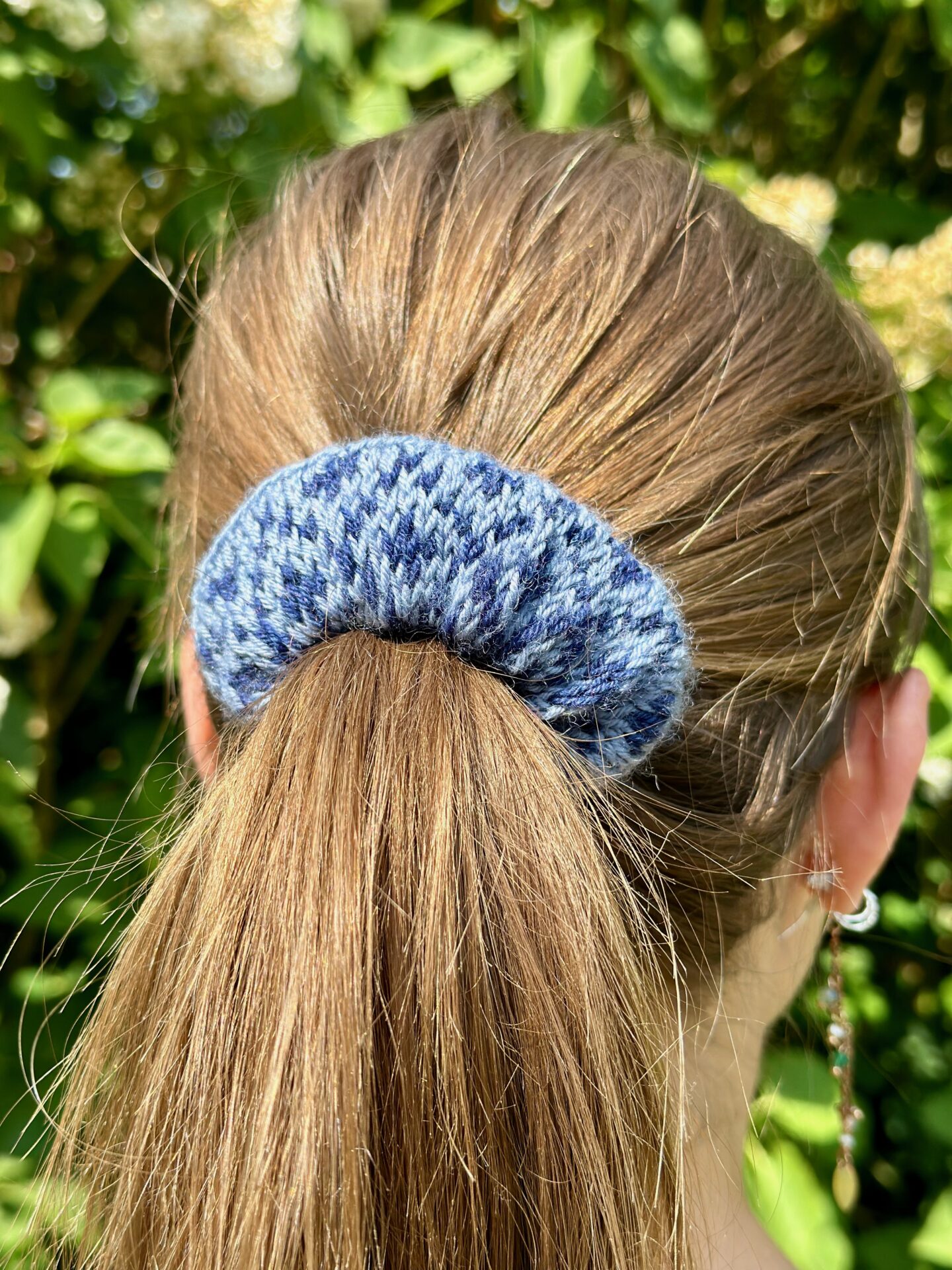 Katrin Scrunchie er en hårelastik er inspireret af et af de mange traditionelle færøske mønstre. Elastikken holder håret godt på plads, da den har en elastik indeni.
