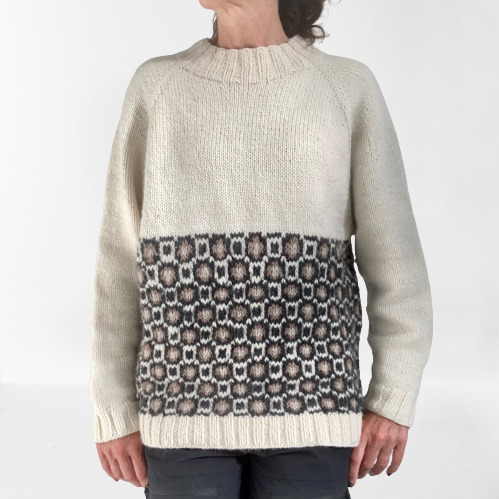 Kilimanjaro Sweater er en smuk strikket sweater med de fineste detaljer, som høj halskant og et smukt mønster