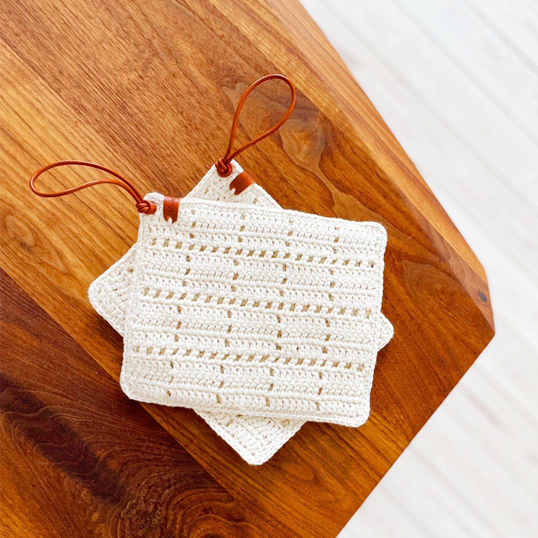 Køkke grydelappen af Milla Billa er et unikt tilbehør til hver køkken. Disse er hæklet med fastmasker og huller, og dannes også med pæne vendemasker. Bagsiden er ren fastmasker, og hullerne er ret små. De skal hækles i et tykkere bomuldsgarn, og har en for- og bagside, så de er rigeligt tætte.