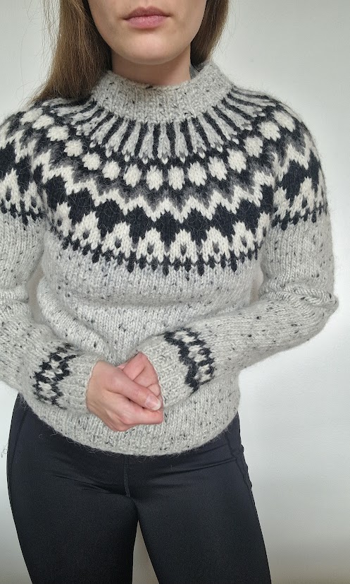 This lopapeysa is perfect for those who love authentic Nordic knitting and want a garment that will last for years. Whether you are planning to wear it on hikes, for everyday use, or simply as a cozy layer during winter, Krít offers both comfort and style. The sturdy Álafosslopi yarn ensures warmth and weather resistance, while the timeless yoke design adds a touch of Icelandic heritage.