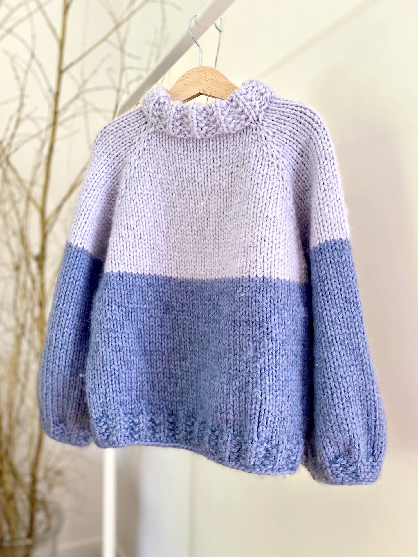 Lazy Sunday Sweater Junior er en vamset og behagelig børnesweater, der er skabt til at holde de små varme gennem vinterens kolde måneder. Med sin enkle, tofarvede colourblock-effekt og fremhævede ribkanter er sweateren både praktisk og stilfuld. Den korte model med lange, vide ærmer gør den perfekt til hverdag og leg, samtidig med at det bløde garn sikrer maksimal komfort.