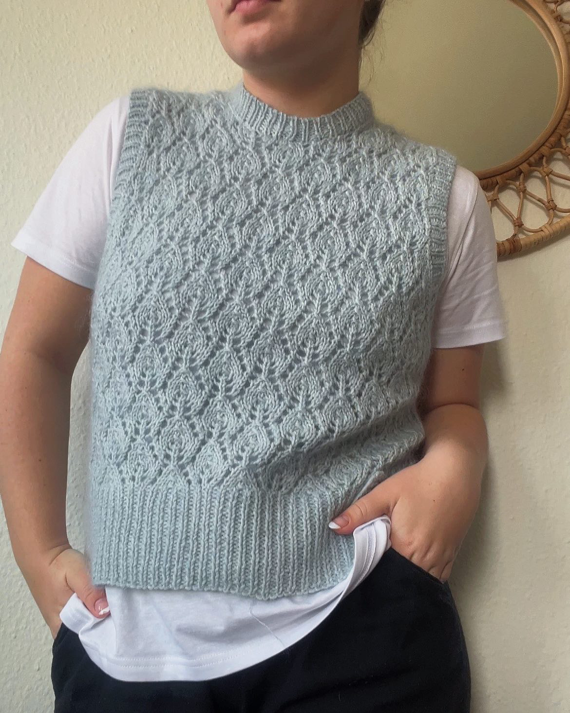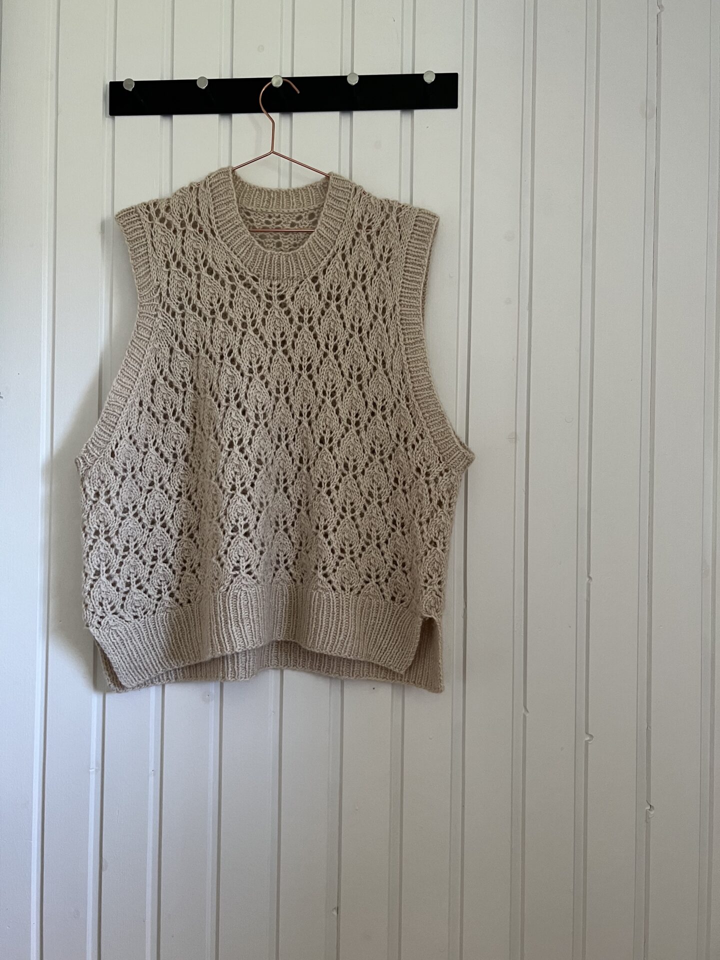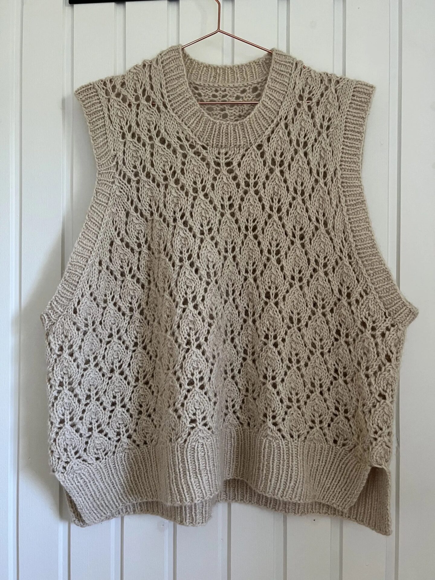 Leaf Me Warm Slipover fra Kracun Knitwear er en mønsterstrikket slipover holder dig dejlig varm.