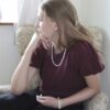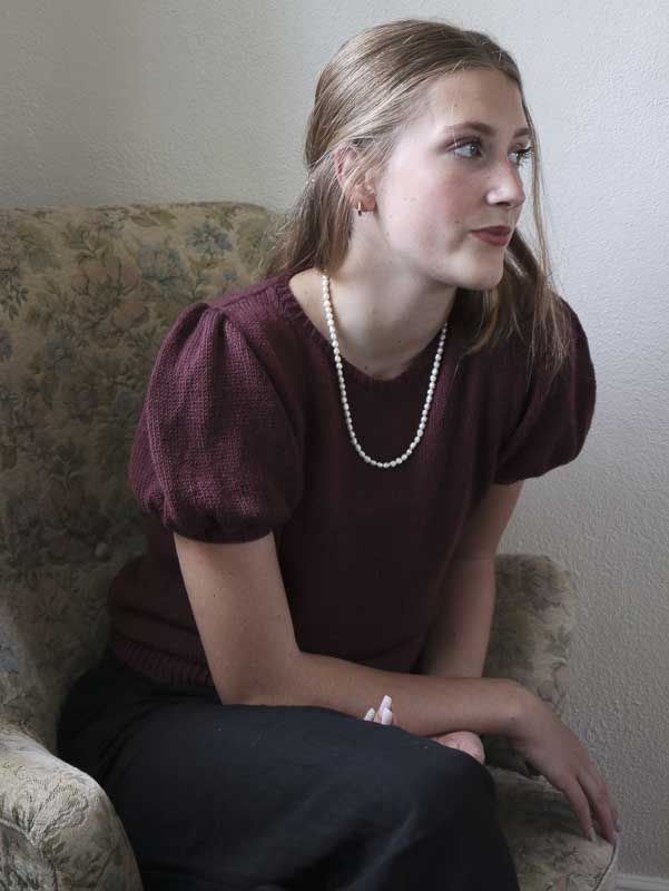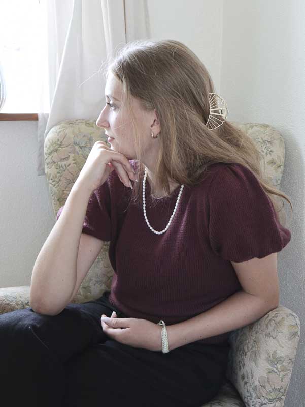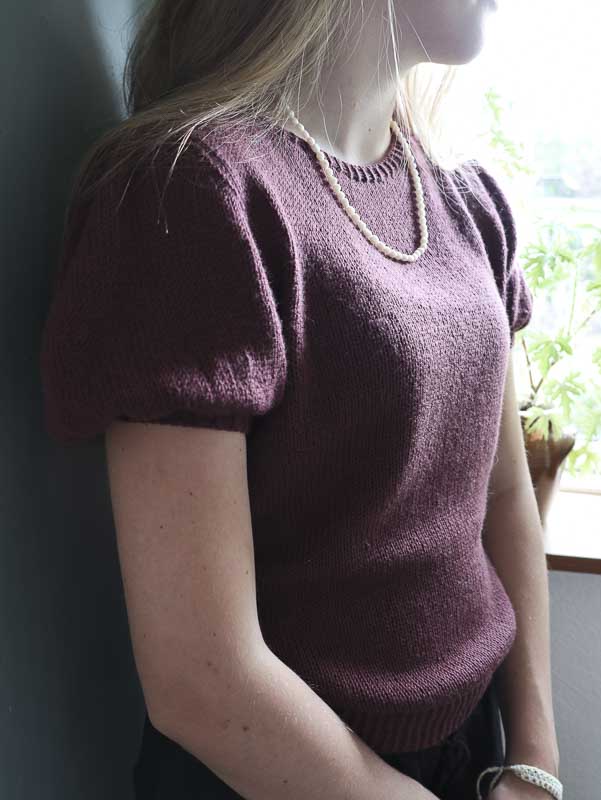 Lilja Tee af Knitamore er en fin og feminin t-shirt med flotte kuppelærmer. Den er enkel og alsidig og egner sig godt til både hverdag og fest.