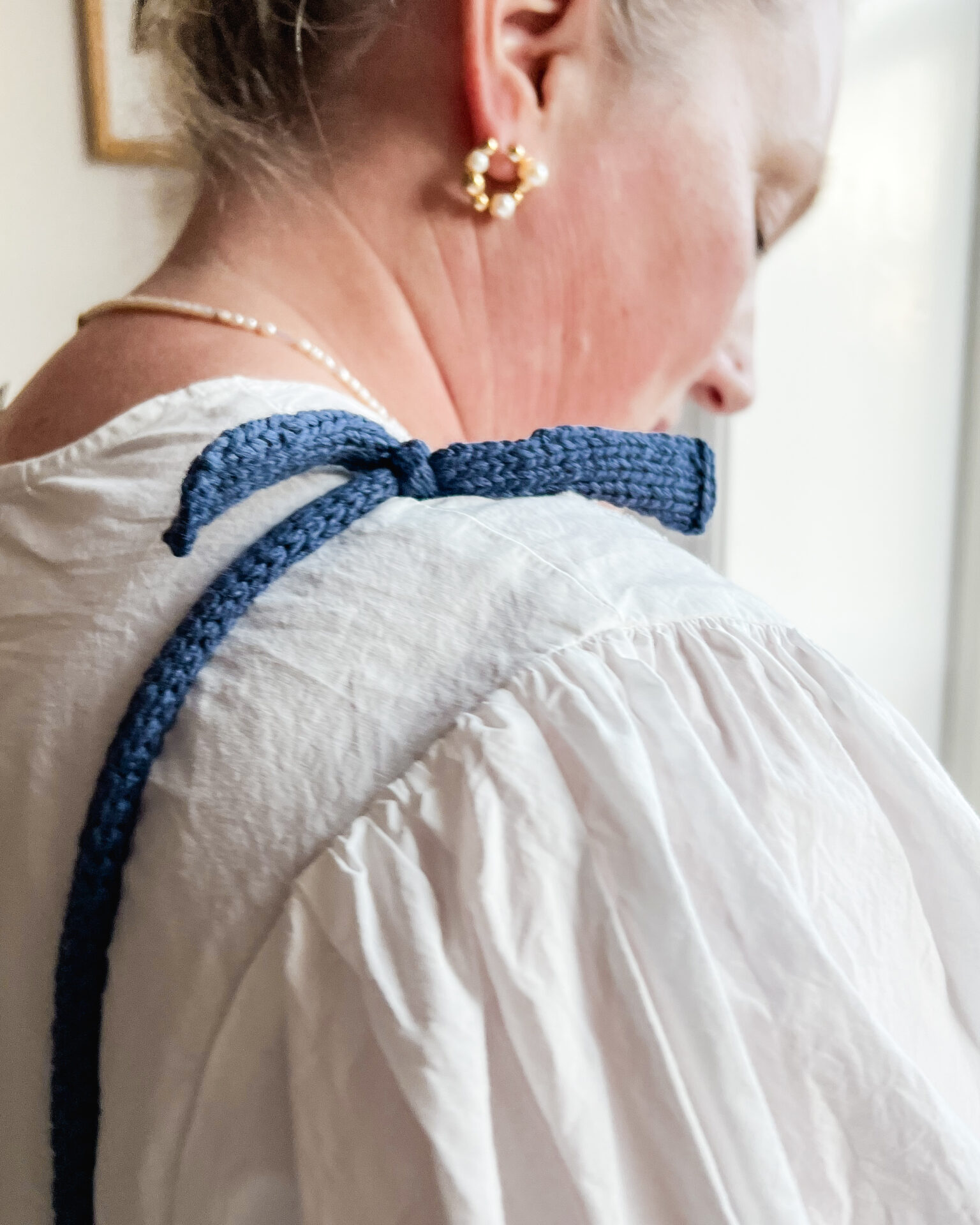 Nettet strikkes på en rundpind, men med en bund i perlestrik, der udføres frem og tilbage. Den unikke konstruktion af tasken afrundes med lange hestetømmer, hvor der til sidst bindes en dekorativ knude for at tilføje et personligt præg.