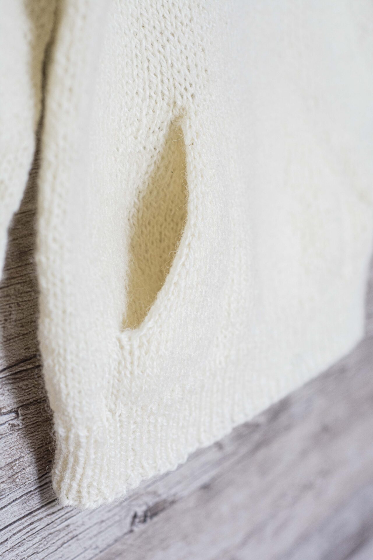 Lommen er et af genserens højdepunkter. Den formes ved at strikke over opsamlede masker, og skaber en dyb og praktisk pose, perfekt til små skatte og kolde hænder. Alle kanter afsluttes med 1r, 1vr rib, som giver en fin og elastisk finish.