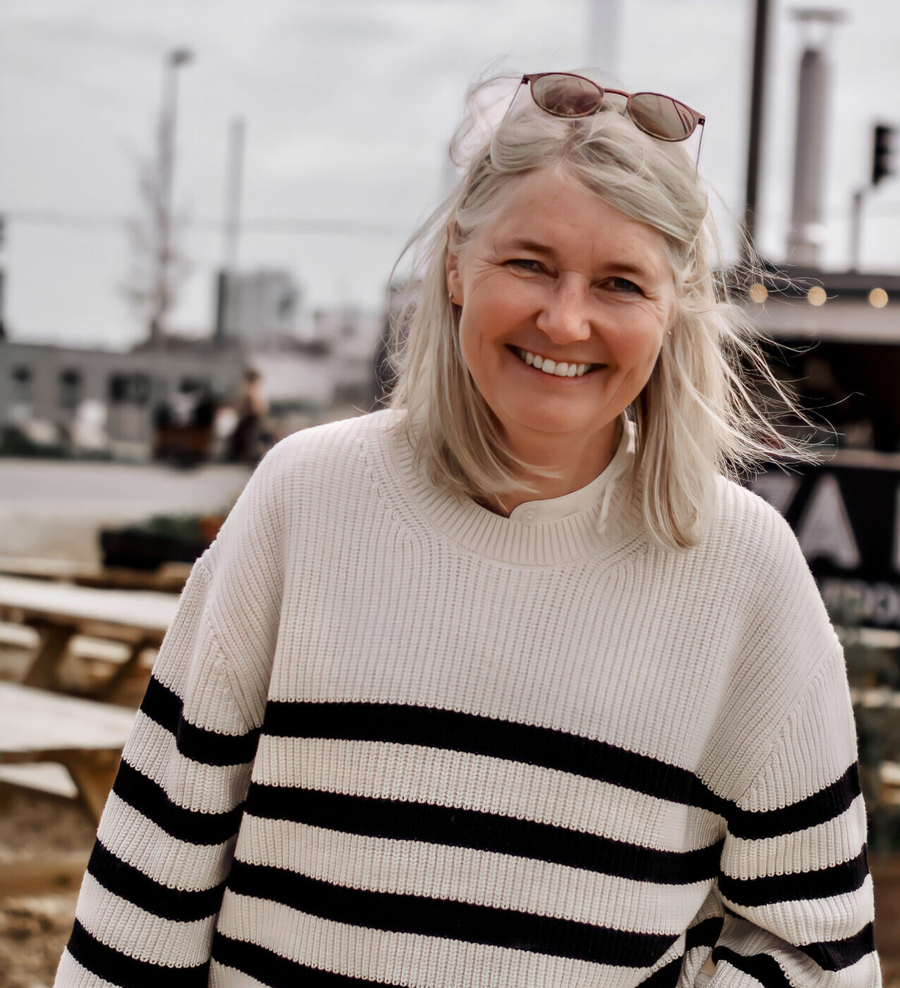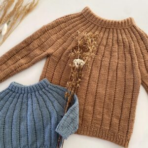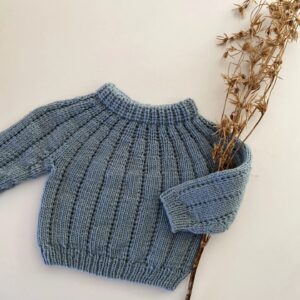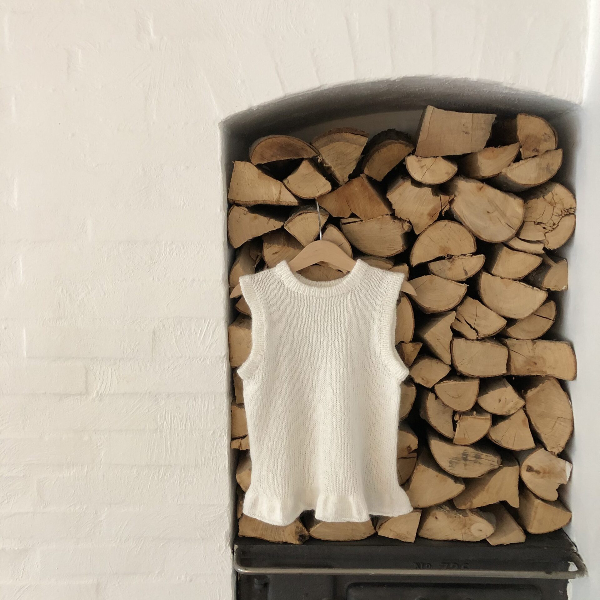 Martha Slipover er strikket med en flæse i taljen og en dobbelt ribstrikket kant ved halskant og ærmegab, som giver et spændende udtryk.