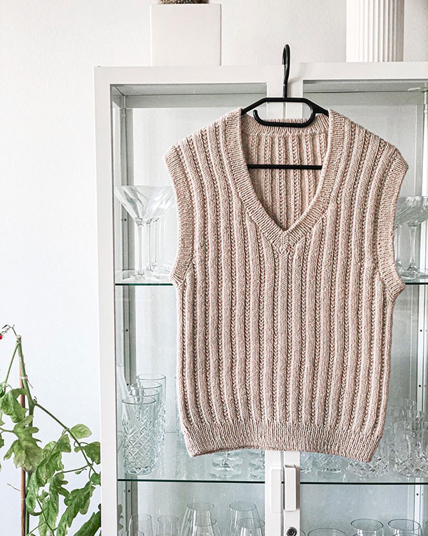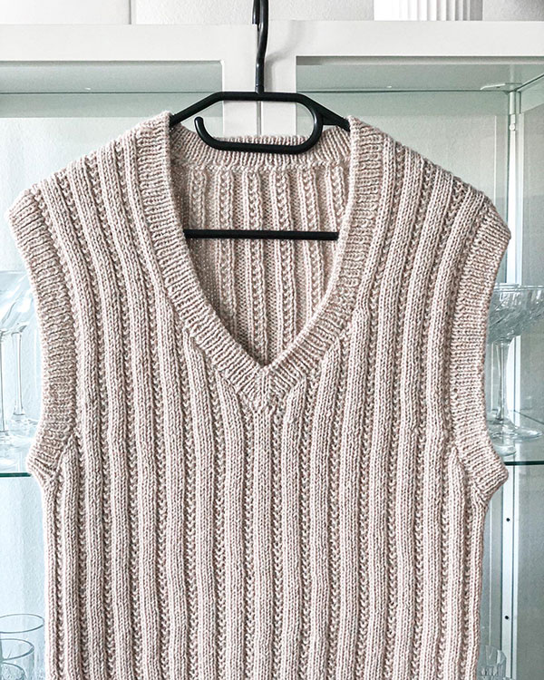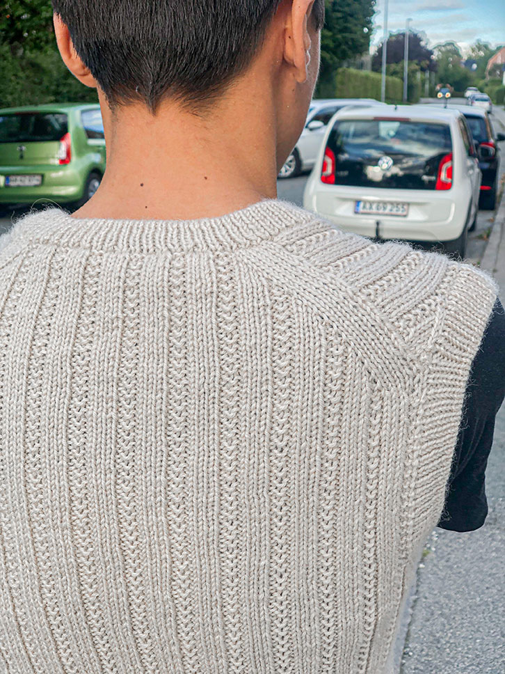 Dobbeltstrik, Italiensk aflukning, Monteringsfri, Mønster, Oppefra, Rib, V-hals