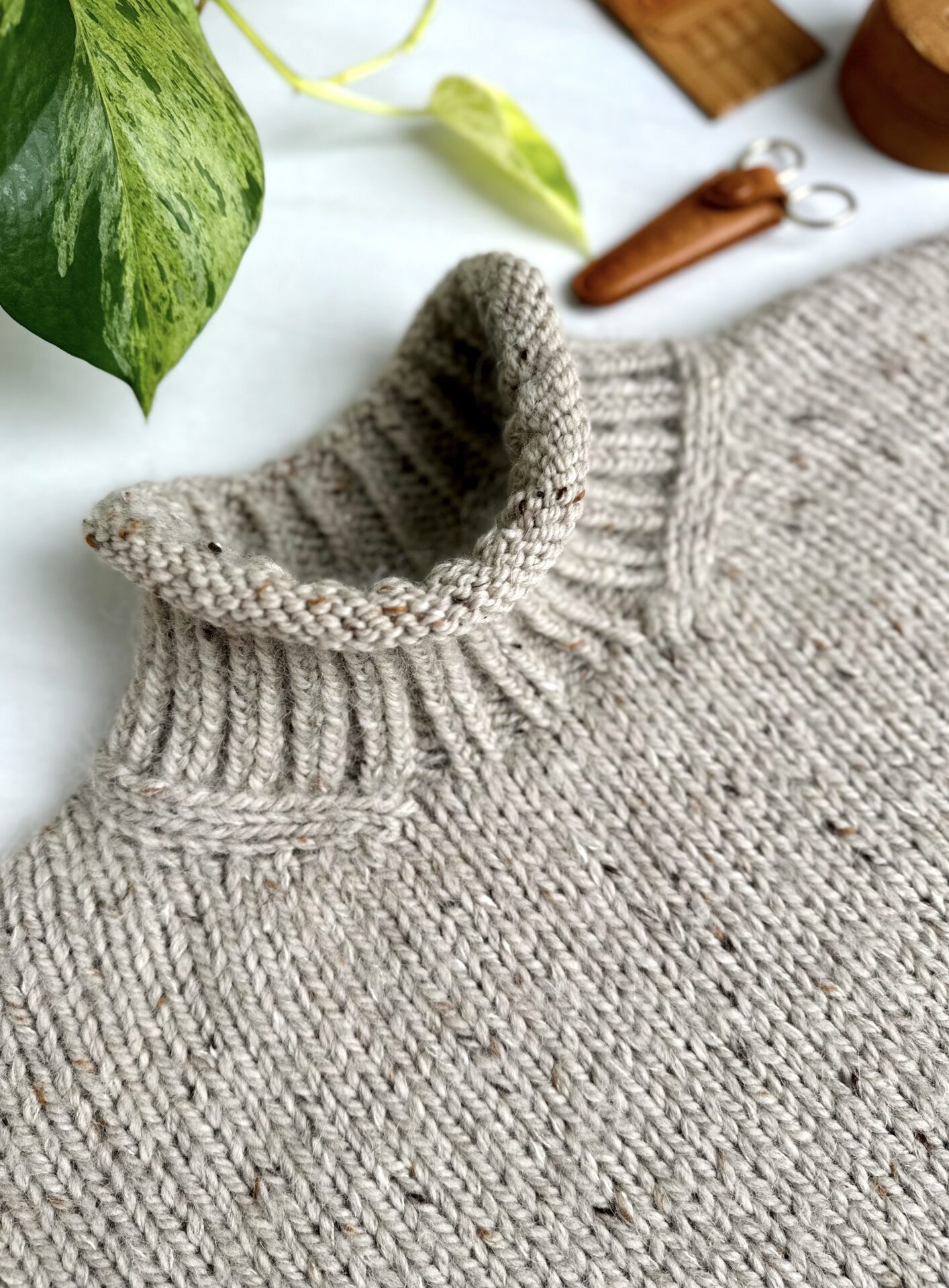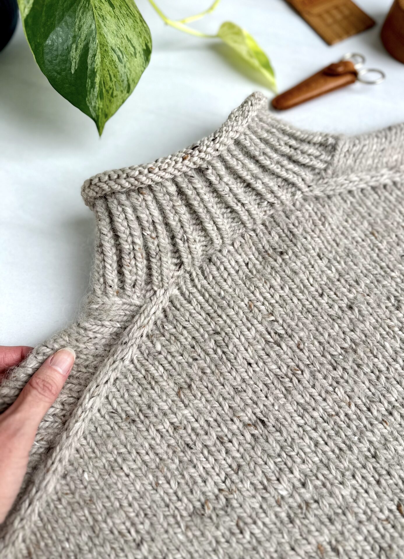 Mila Sweater er designet med en modificeret sadelskulder, hvor bagstykket strikkes først, og skuldrene formes med udtagninger. For- og bagstykkerne samles under ærmegabet, og kroppen strikkes rundt. Ærmerne strikkes til sidst med vendepinde for at forme ærmekuplen og kan tilpasses med eller uden indtagninger. Ribkanterne strikkes i drejet rib, og halskanten afsluttes med en rullekant for et sofistikeret touch.