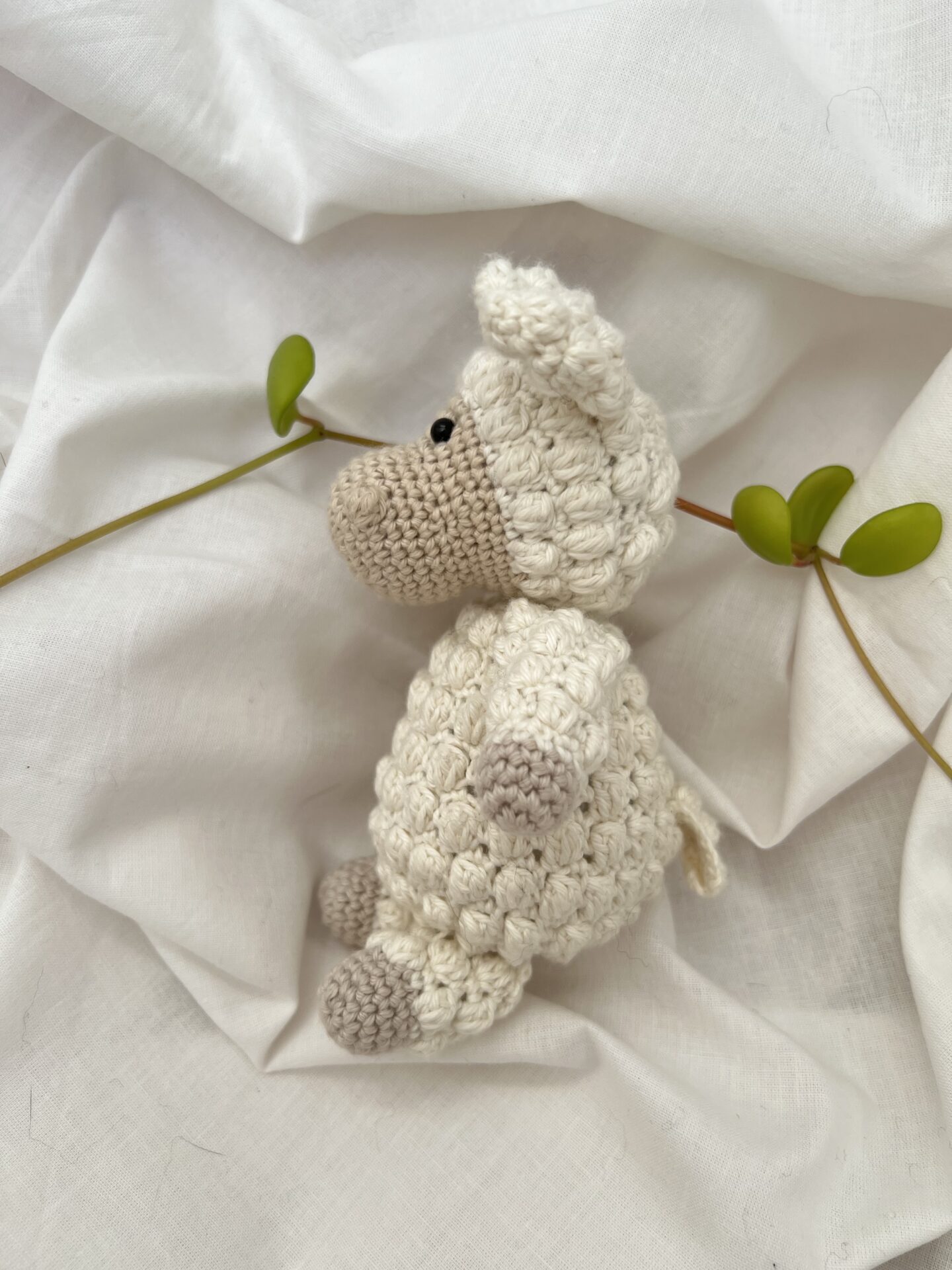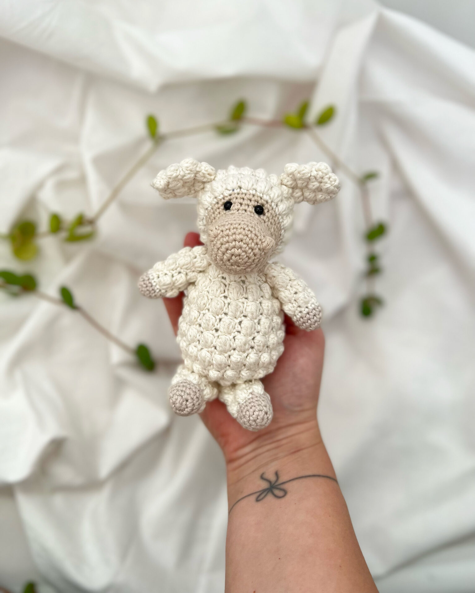Mini Frida fra By Trine Møller er en hæklet bamse med mønster. Den lille bamse er oplagt til barsel – eller dåbsgave.