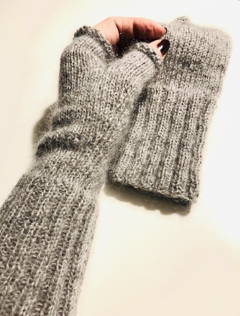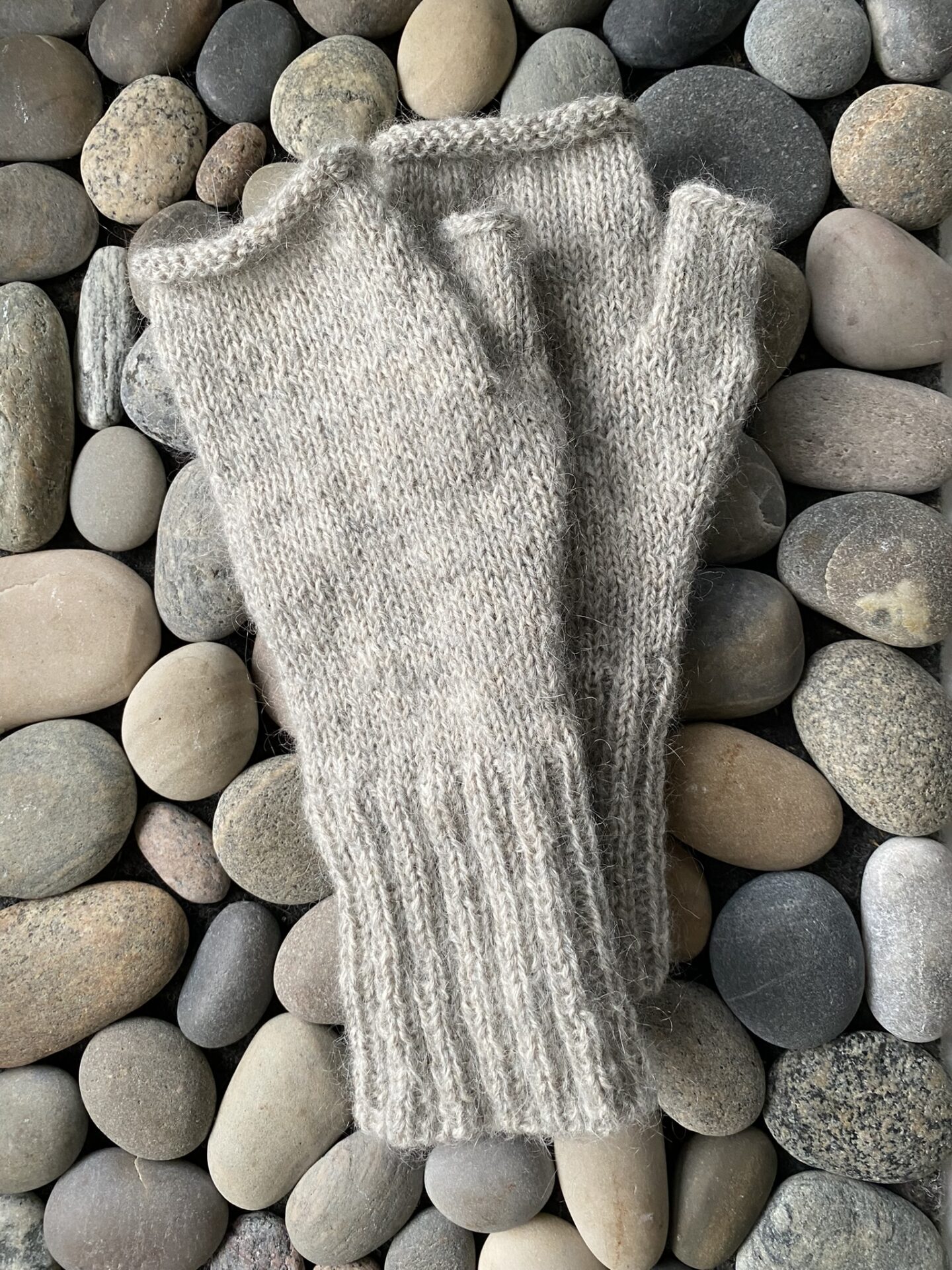 Miss Sophie’s Gloves af BelongsToMyMom er et par fingerløse vanter, der er strikket på pind 3,5 mm i to tråde garn. Maskerne er derfor lidt tætte, hvilket er med til at holde på varmen.