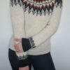 The Mistur Lopapeysa, designed by Rakel – Knitter from Iceland, is a classic Icelandic sweater knitted in Ístex Léttlopi. The pattern is worked in three colors (White, Black, Rust) with body and sleeves knitted in the round before joining for the striking colorwork yoke. Sizes range from XXS to 5XL, with skein requirements adjusted per size. You will need circular needles in 4 mm and 5 mm as well as double-pointed needles. The gauge is 18 sts x 26 rows = 10 cm on 5 mm needles. The sweater has a slim fit and slightly shorter body length, with the option of adjusting for a looser fit. Léttlopi comes in 50 g skeins with 100 m (equivalent to 100 m per 50 g skein), making it lightweight yet warm. The Mistur sweater is perfect for knitters who enjoy stranded knitting and timeless Nordic design.