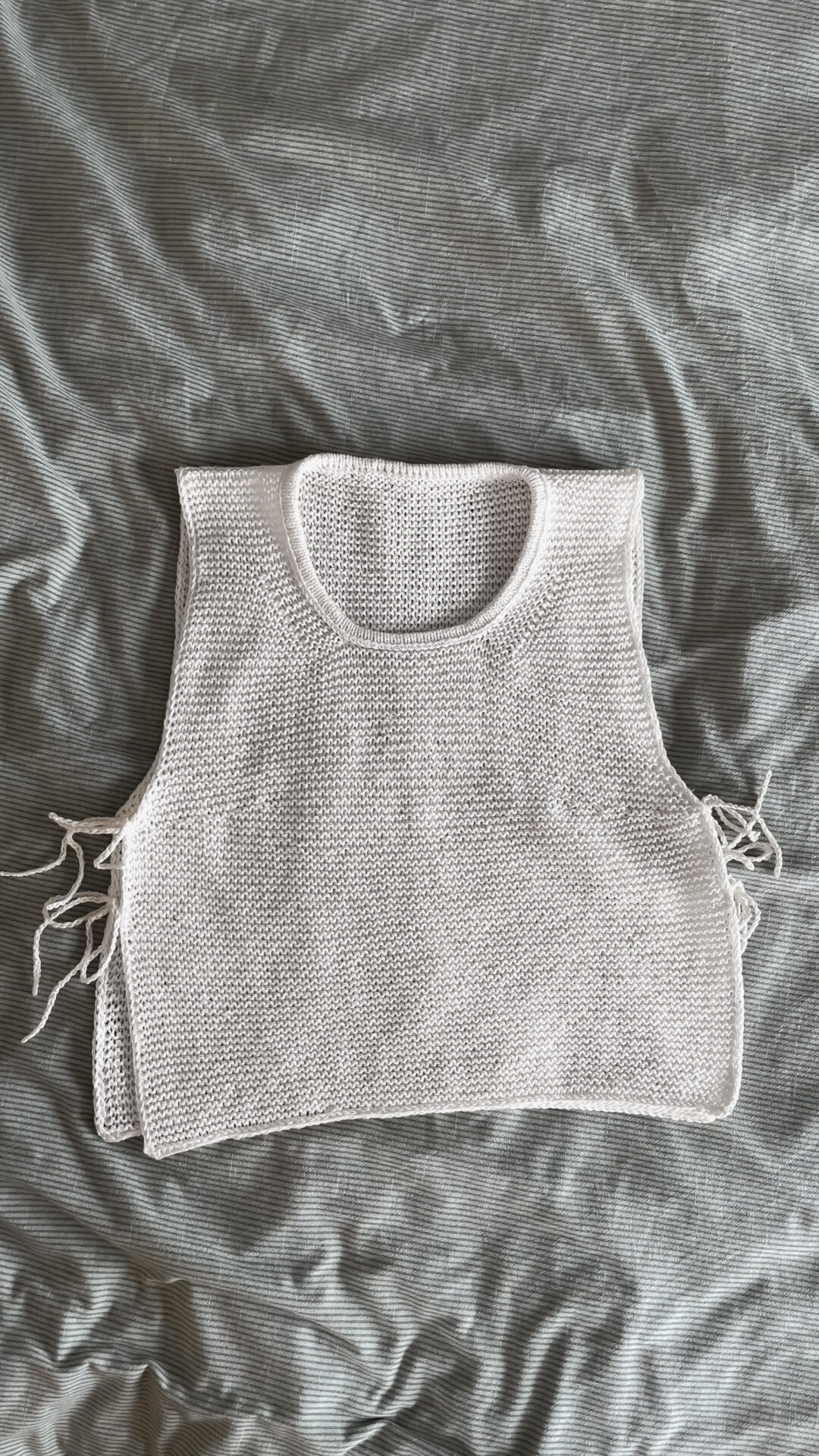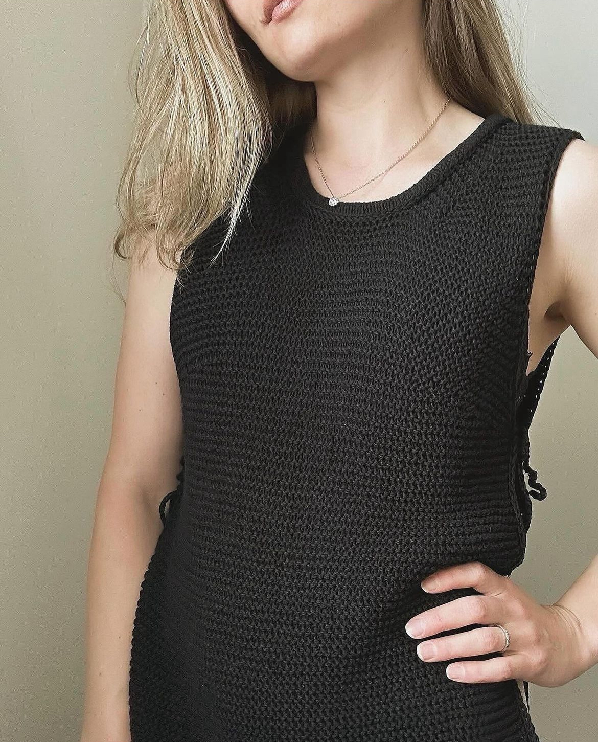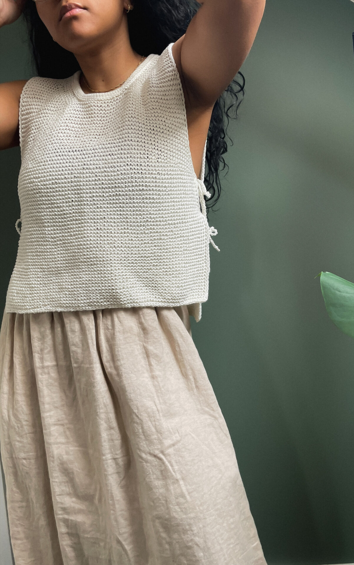 Nexi Vest by CRÉADIA STUDIO, a beautiful, feminine, and timeless slip-over with fine side tie details. A lovely addition to your wardrobe.