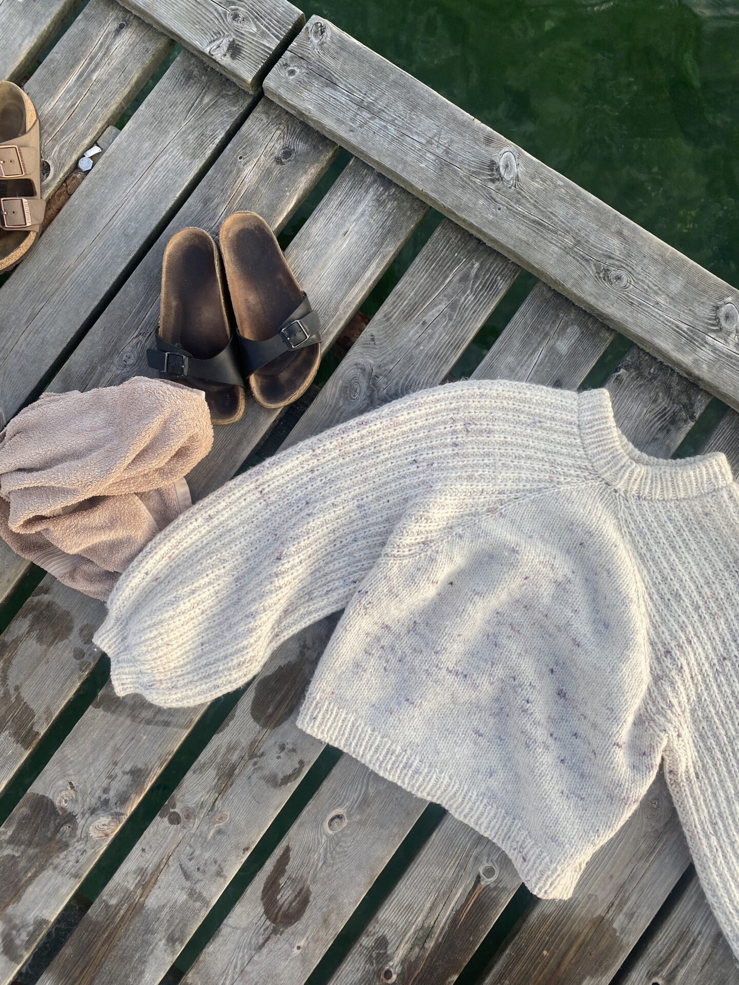 Nibe sweater af KnitVik er en blød, vamset og enkel sweater, som strikkes oppefra og ned. Raglan udtagningerne starter i midten af bærestykkets forstykke og bagstykke. Æmerne strikkes i halvpatent med Magic Loop-teknik.