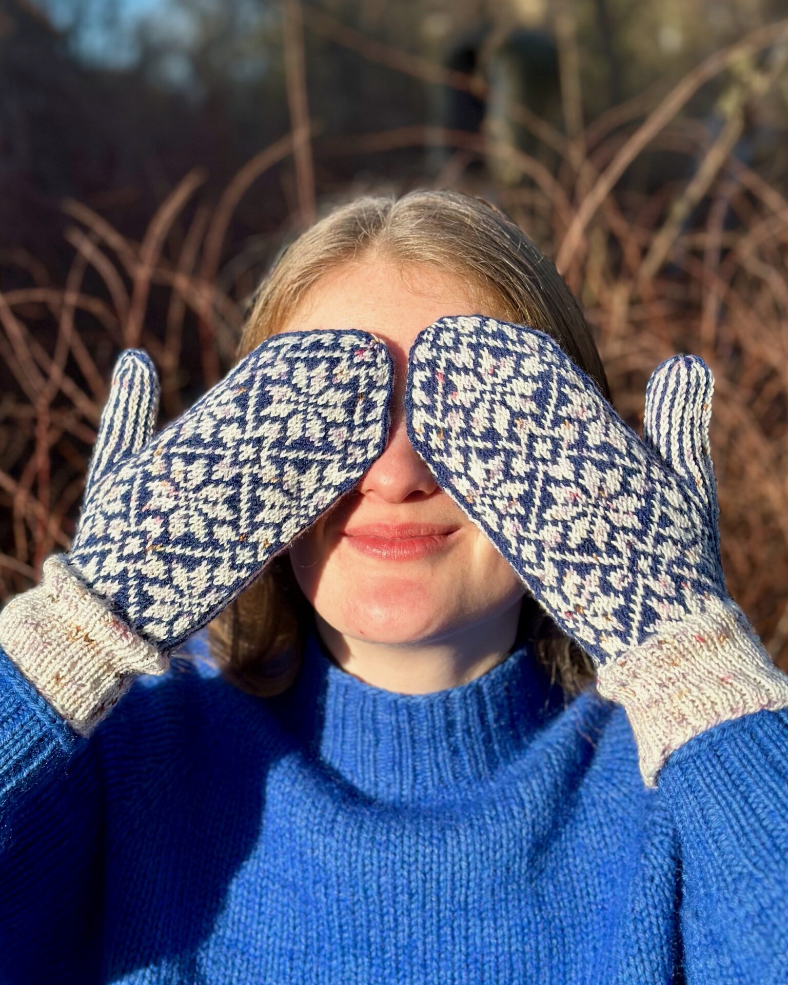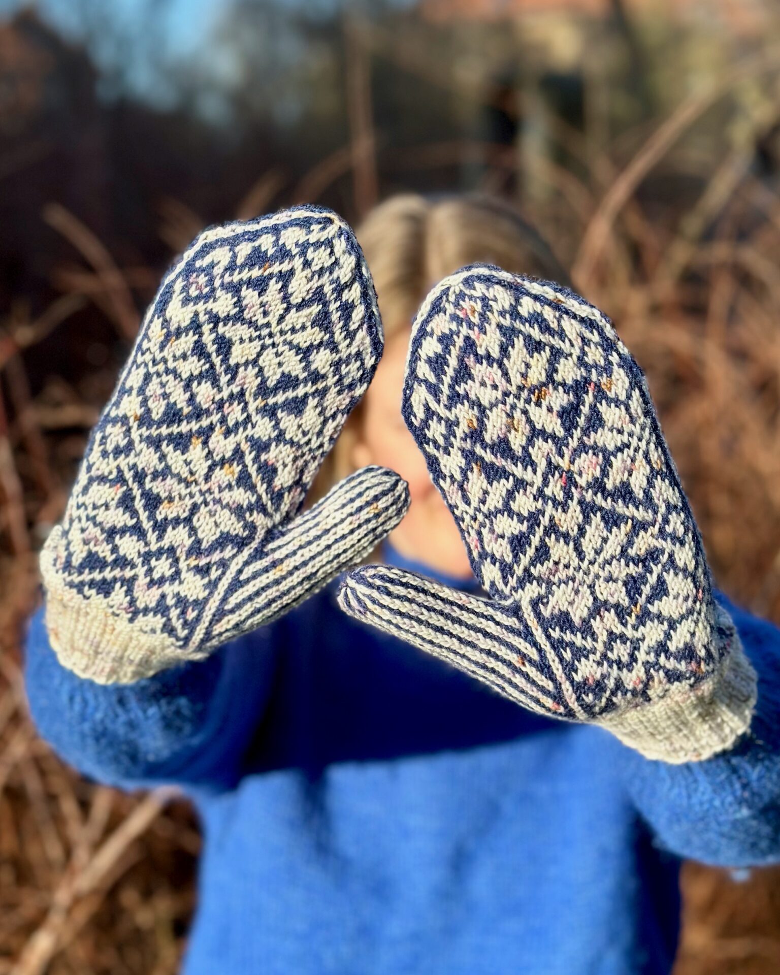 Nora Mittens er et par unisex luffer med et nordisk inspireret stjernemønster, som er perfekt til efterår og vinter. Lufferne kan strikkes i tre forskellige størrelser.