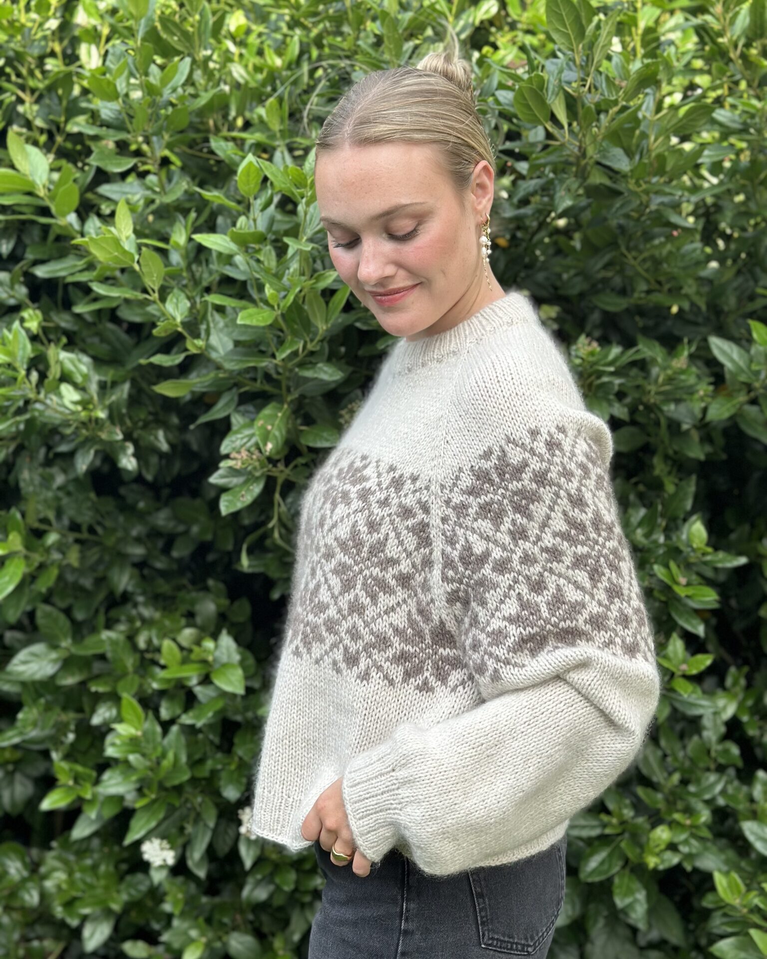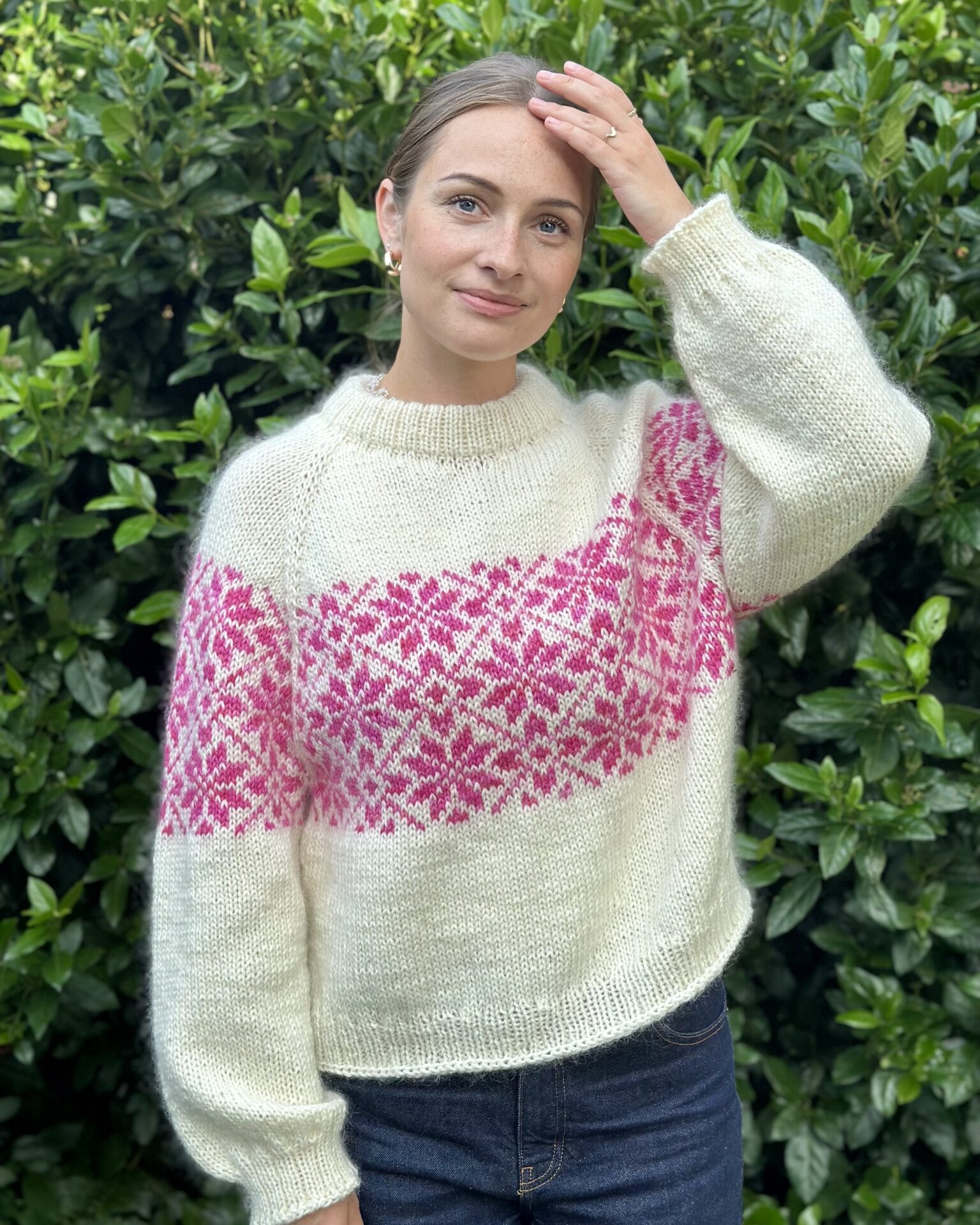 Med Nora Sweater får du ikke bare et tidløst og stilfullt tillegg til garderoben din, men også en koselig strikkeopplevelse som utfordrer og gleder på de helt riktige måtene.