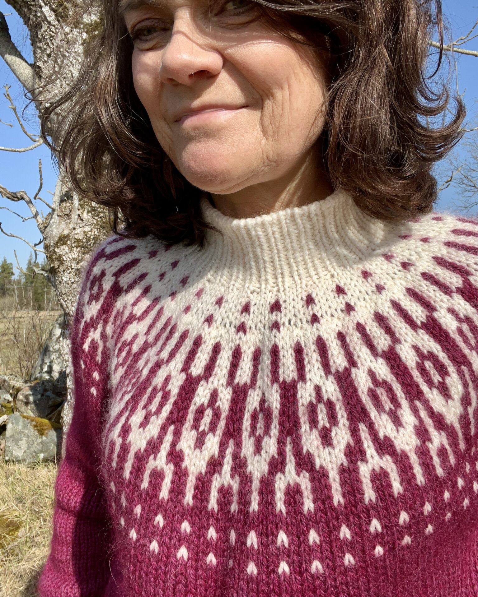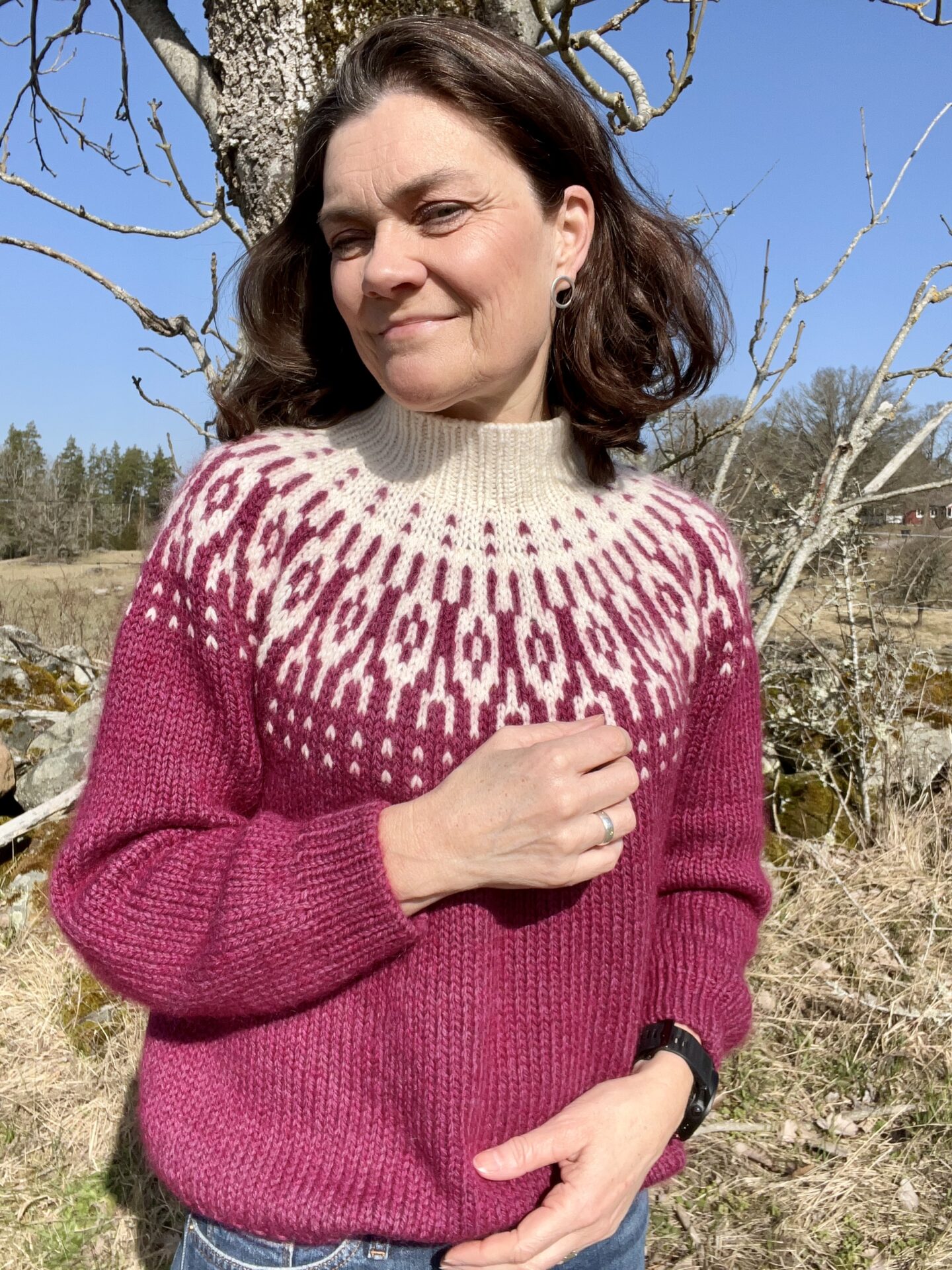Strik denne smukke Nordic Summer Sweater af Knit & Relax. Sweateren har en oversize pasform, og strikkes med det smukkeste fair isle mønster. Sweateren strikkes oppefra og ned, så du nemt kan justere længden på krop og ærmer, som du bedst kan lide det. Du strikker sweateren i to farver, og har derfor også rig mulighed for at kombinere farverne lige som du bedst kan lide dem.