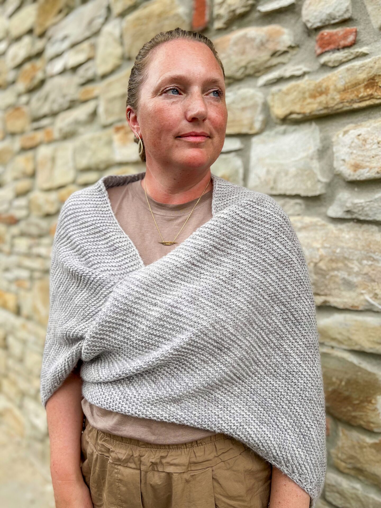 Nydnings Sjalet af Dorte Bak er et smukt og alsidigt sjal, der kombinerer klassisk elegance med moderne enkelhed. Designet er tidløst og giver dig et sjal, der kan bruges året rundt, uanset om det er til at holde varmen på en kølig sommeraften eller som en ekstra hyggefaktor om vinteren. Med en smuk trekantet form og fine detaljer skabes der en let og luftig tekstur, der giver sjalet et sofistikeret udtryk.