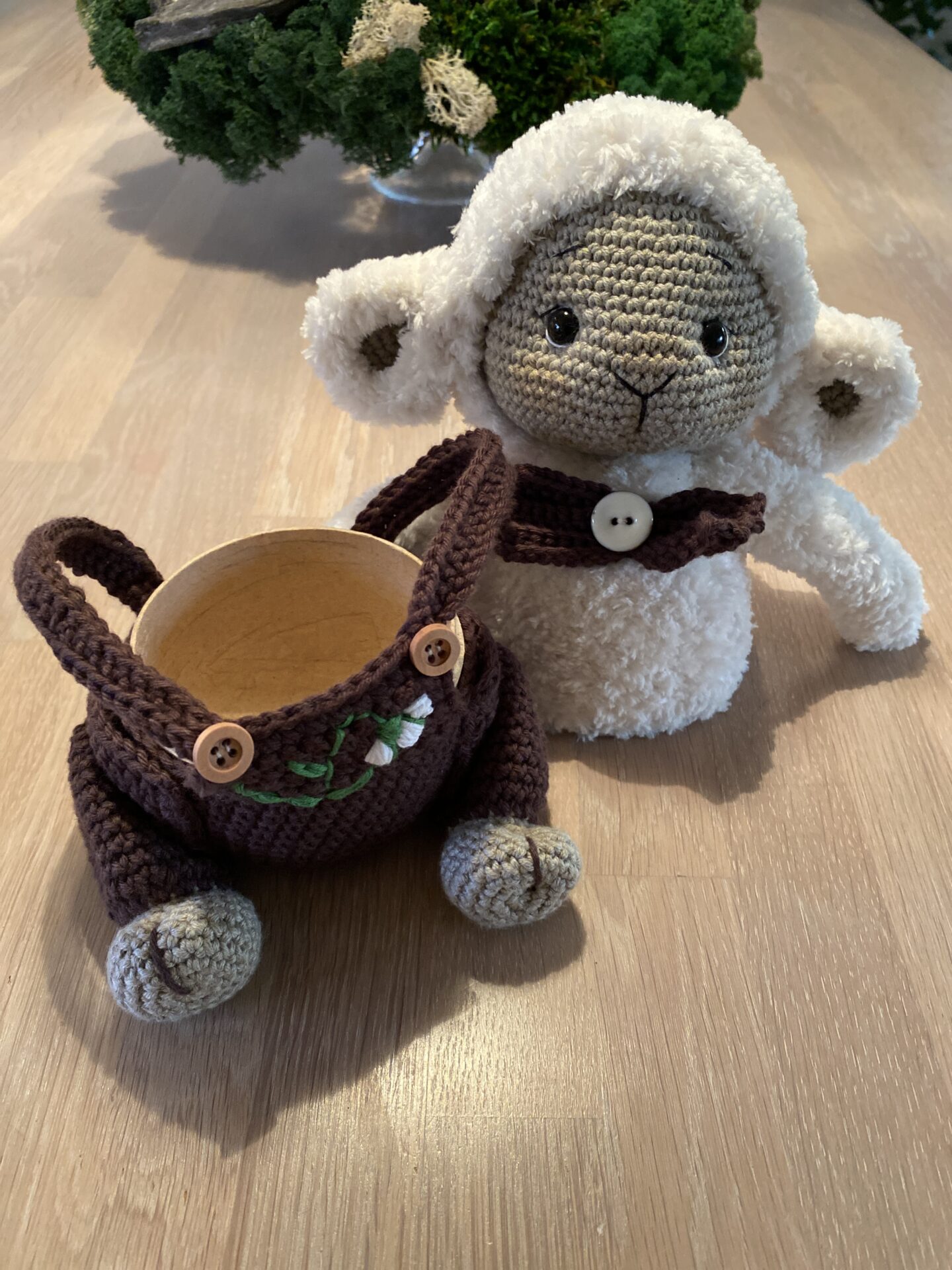 Slutresultatet er et utroligt nuttet får, der sidder ned med benene fremad, med åbne lommer til armene og en yndig butterfly. En perfekt DIY-opgave for påskeglade hæklere, der elsker unikke og personlige kreationer.