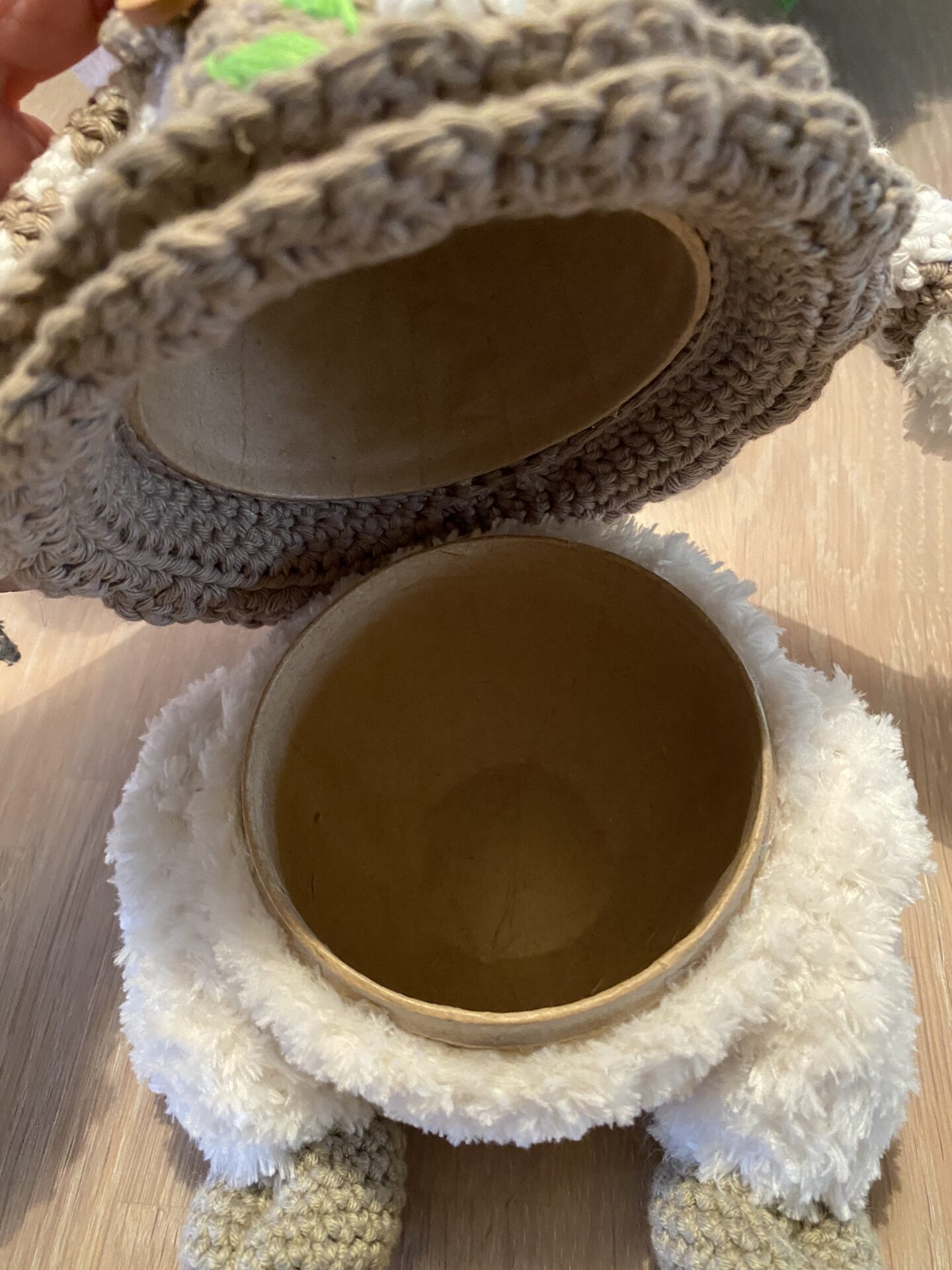 Bring charmen til påsken med dette skønne Påskeægs-får (hun) fra Trines Makværk – en uimodståeligt nuttet hækleopskrift, der kombinerer påskens sødme med kreativ håndværk. Det lille får måler ca. 23 cm i højden og er bygget op omkring et todelt papæg (12 cm højt, 9 cm i diameter), som kan åbnes og fyldes med overraskelser – perfekt som en personlig gave eller dekoration.