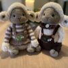 Du skal bruge hæklenål 3,5 mm og 4,5 mm, afhængig af hvilke dele du arbejder med. Overdelen hækles med detaljeret kjole, seler og smæk, og monteres på æggets overdel. Skørtet er løst og falder smukt over underdelen. Der tilføjes fine detaljer som sikkerhedsøjne, broderede ansigtstræk, silkebåndssløjfer ved ørerne og små træknapper. Alt samles med limpistol og lidt vandfarve giver ekstra liv til kinderne.