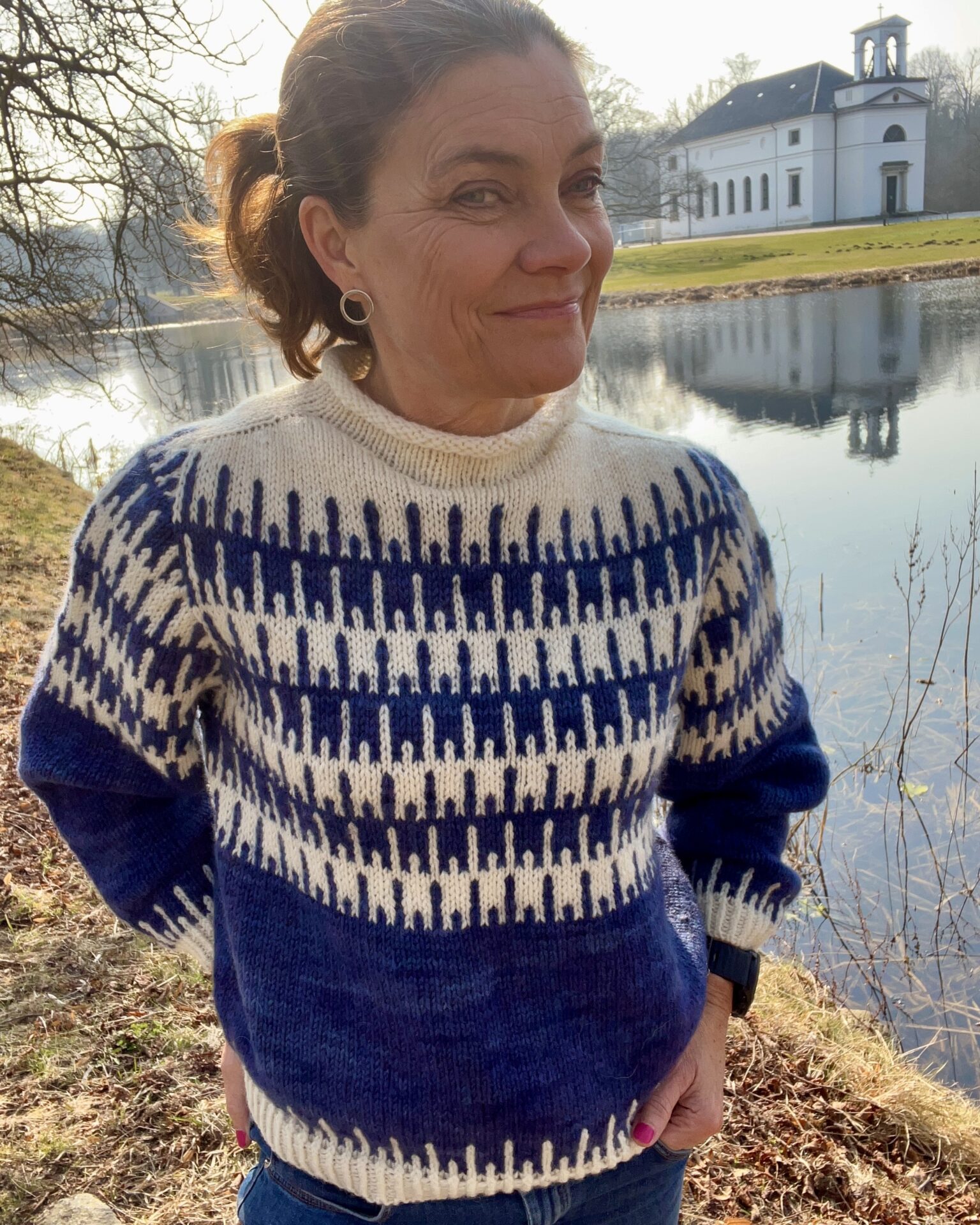 Piano Sweater af Knit & Relax er en dejlig klassisk raglantrøje med et smukt detaljeret mønster.
