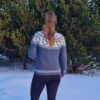 Pisces Sweater is a stunning knitted sweater design by Rakel from Knitter from Iceland. This zodiac-inspired sweater is part of the Zodiac Lopapeysa series and features a beautiful yoke with a Pisces motif. The design is knitted in Istex Léttlopi, a classic Icelandic yarn known for its warmth, lightness, and durability. Léttlopi comes in 50 g skeins with a running length of 100 m, which equals 200 m per 100 g, giving a length of 100 m per 50 g skein. The sweater is worked in three shades: Blue (9418) as the main color, White (0051) as contrast, and Light Blue (1700) to enhance the motif. Depending on size, the required skein amounts vary, with detailed quantities listed in the pattern to ensure the perfect balance of colors.