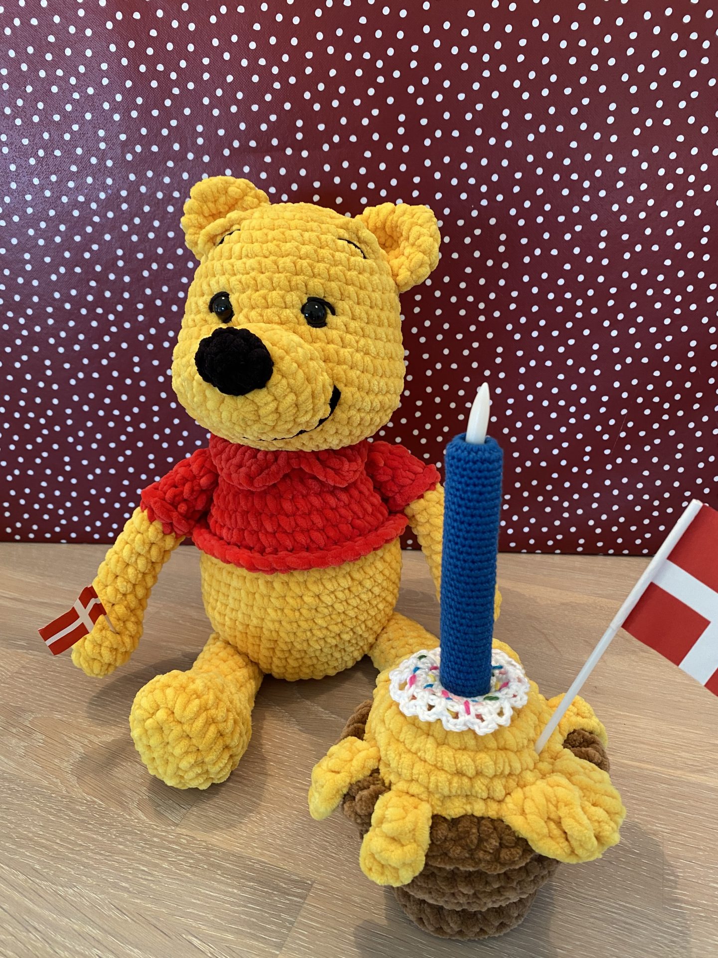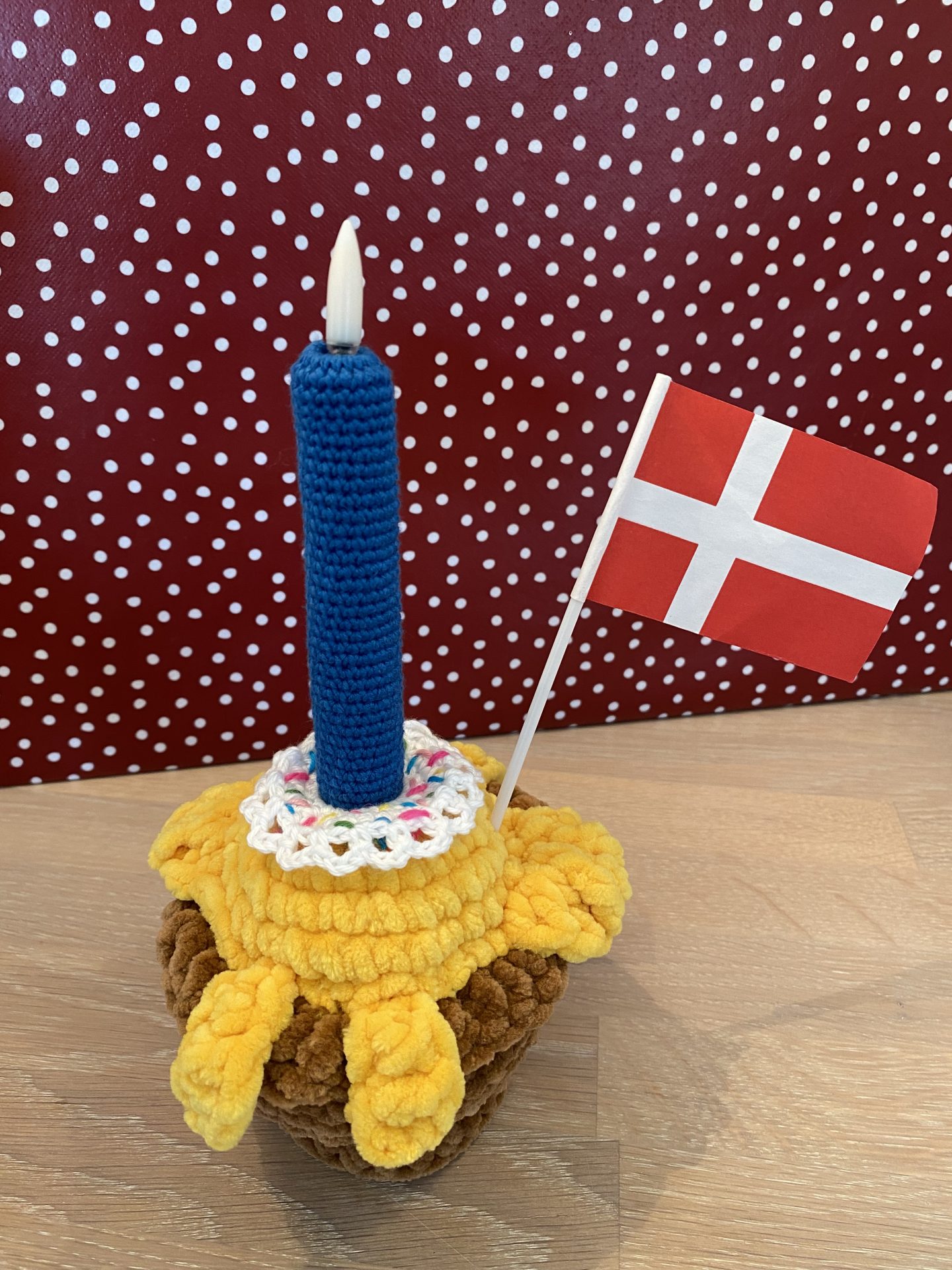 Materialelisten over garnet brugt, kan sagtens skiftet us med andre alternativer, såfremt nålestørrelse og løbelængde er de samme. Der er blevet brugt små rester til at færdiggøre de sidste detaljer, så som krymmel på glasuren.