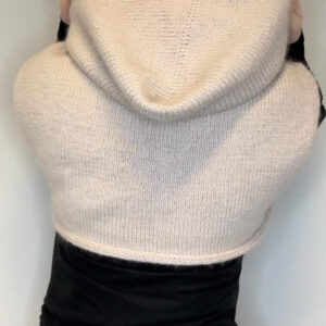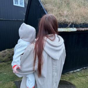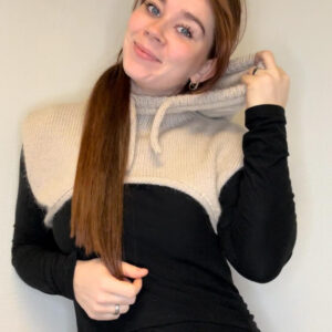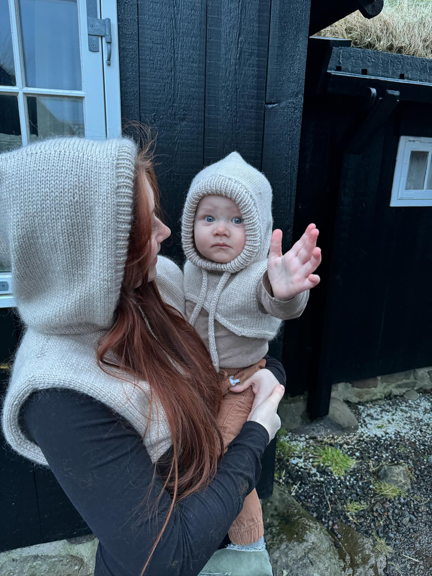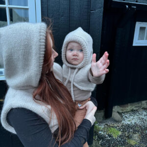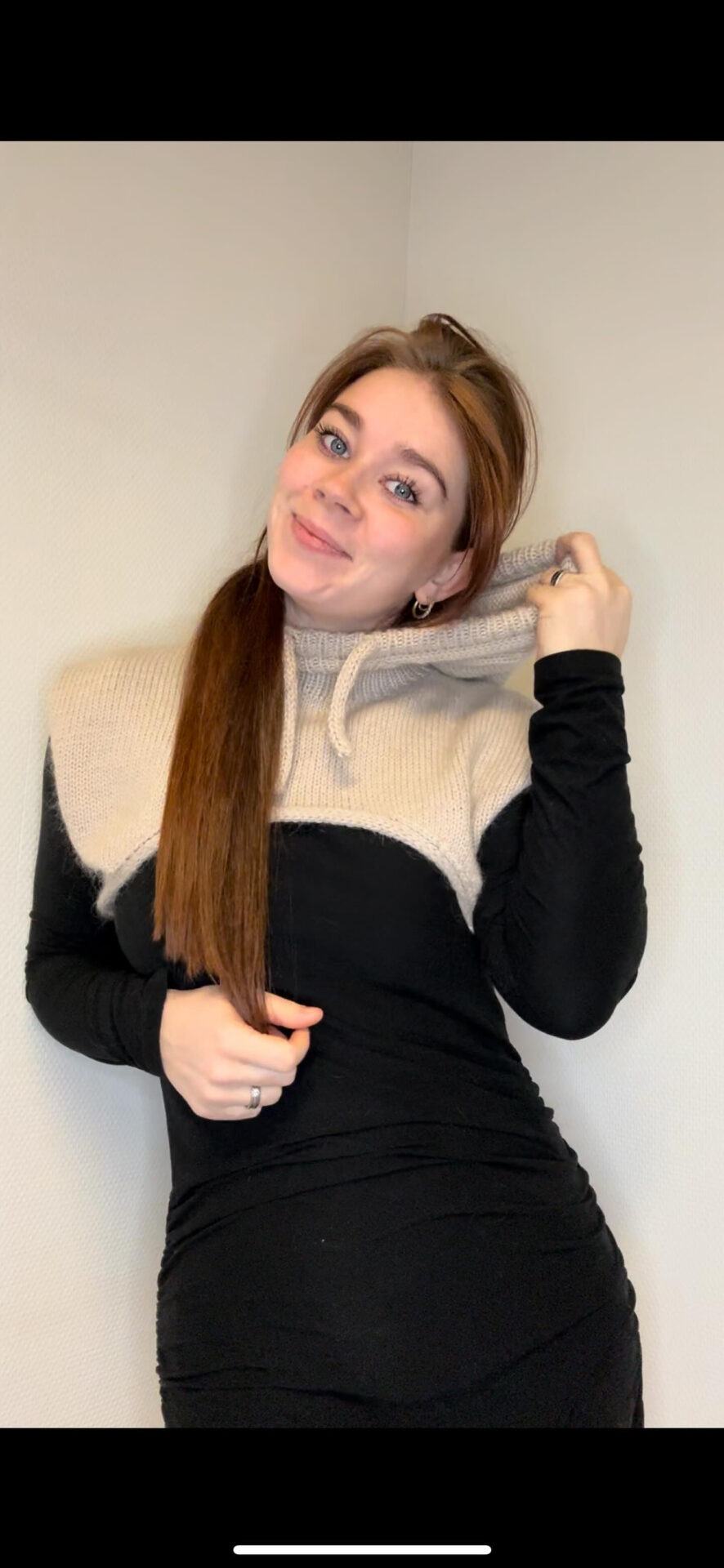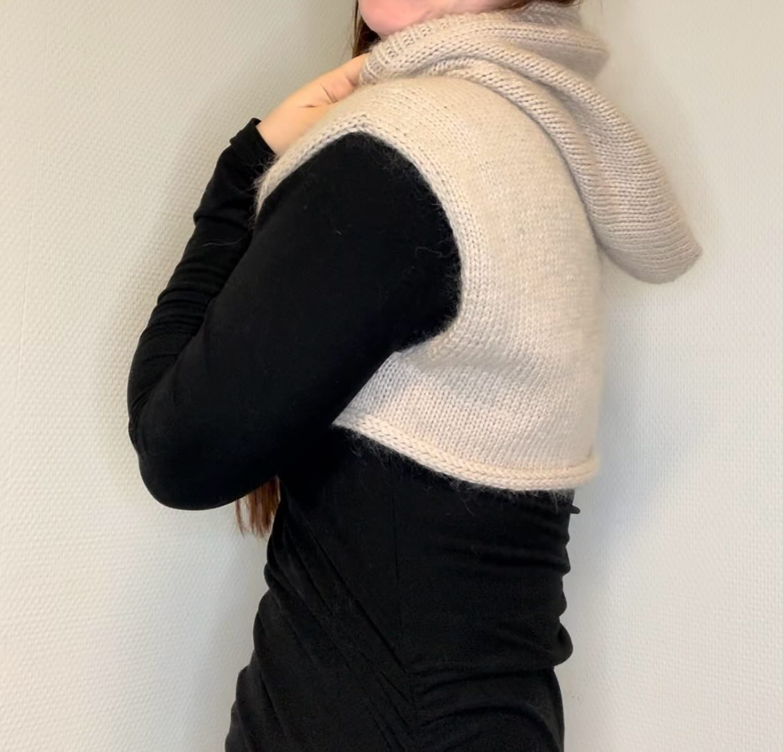 Reka Hoodie er en halsedisse kombineret med en hættetrøje, der er lukket under armene. Et helt bevidst valg, for at pasformen under en jakke er bedst mulig. Den er skabt til nybegyndere som Sunnva selv er.