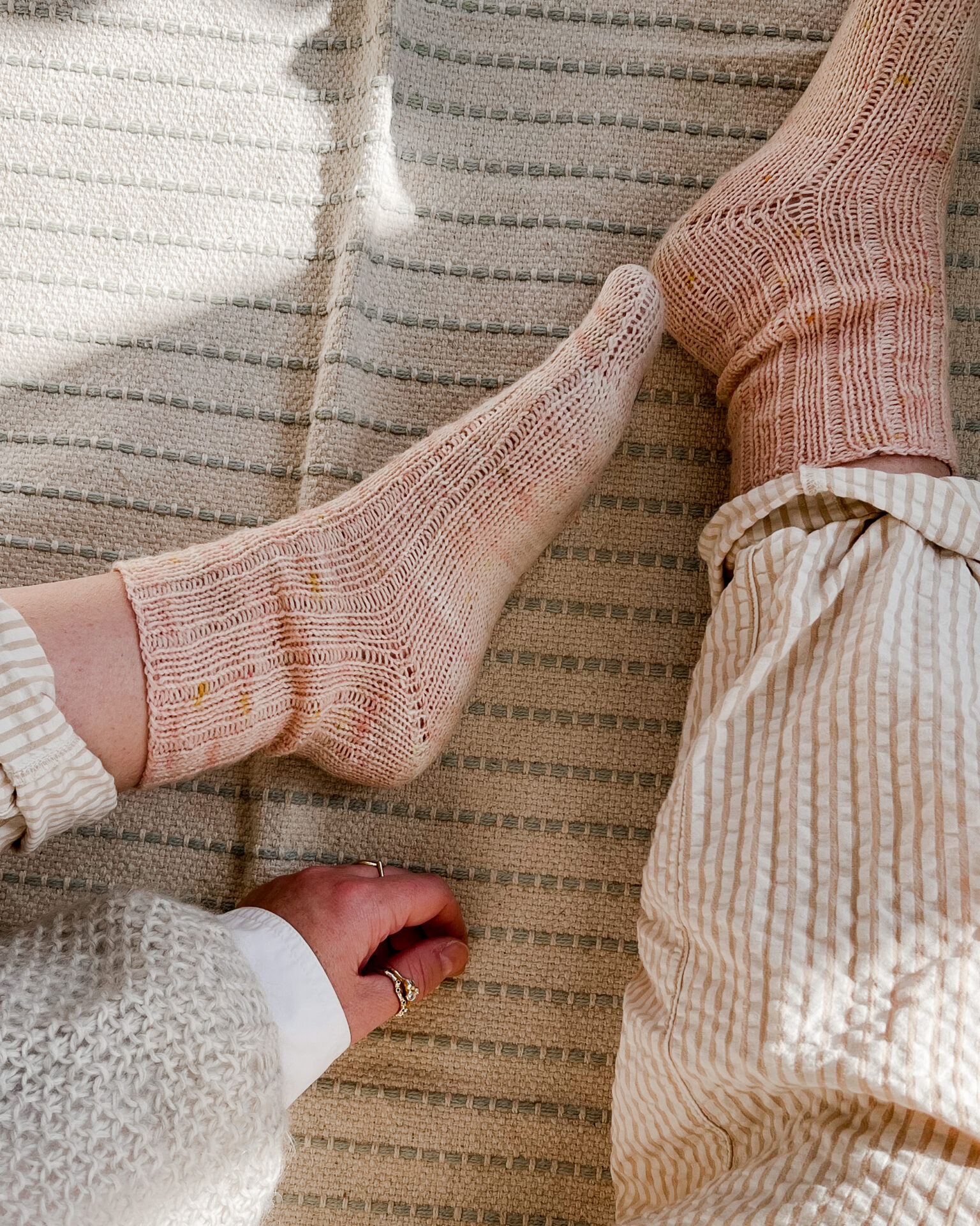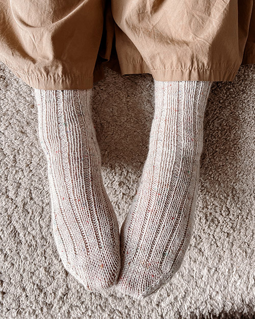 Rillestrømper er enkle, bløde og elastiske strømper, som hurtigt bliver en favorit i garderoben. De strikkes oppefra og ned, hvilket giver dig mulighed for at tilpasse længden på både skaft og fod præcist til dine behov. Strømperne strikkes i rib-riller (3 ret, 1 vrang) og formes med vendepinde og indtagninger ved tåen.