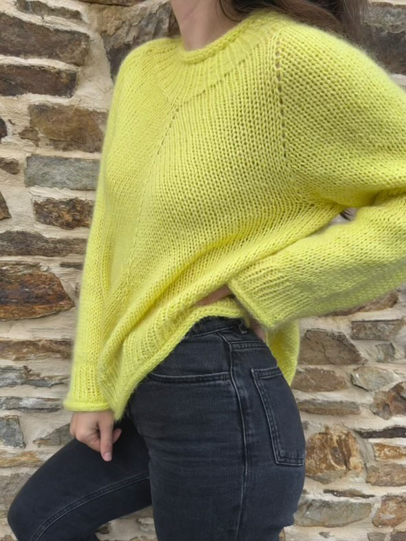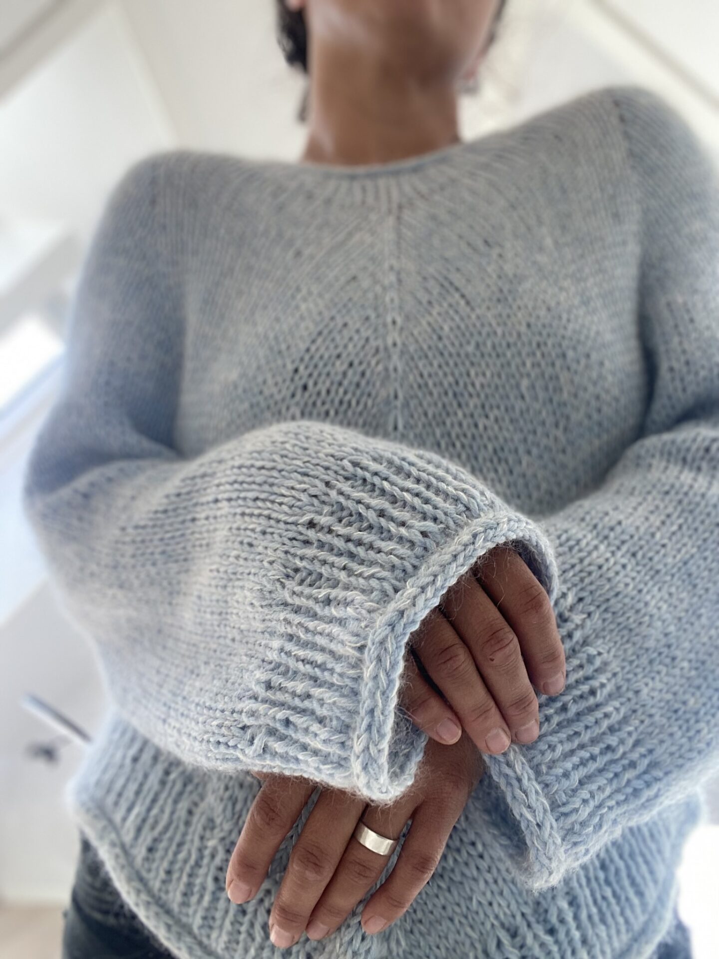 Røsnæs Sweater af Vibely Strik er en feminin og charmerende raglantrøje, med unikke detaljer og en løs pasform.