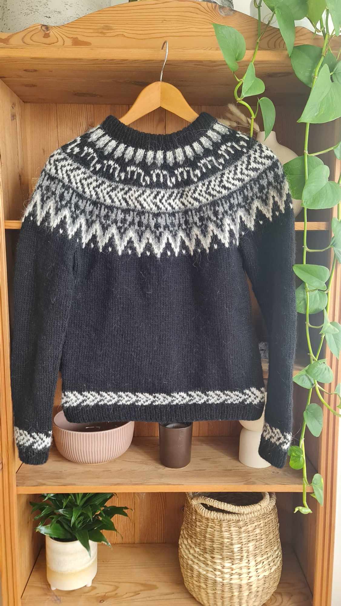 Finishing touches include sewing the underarms and blocking the sweater carefully to ensure even stitches and proper fit. Léttlopi softens beautifully after a gentle soak, giving the finished garment durability, warmth, and the authentic look of Icelandic knitwear. The Scorpio sweater is not only a knitting project but also a statement piece that combines tradition with modern design.