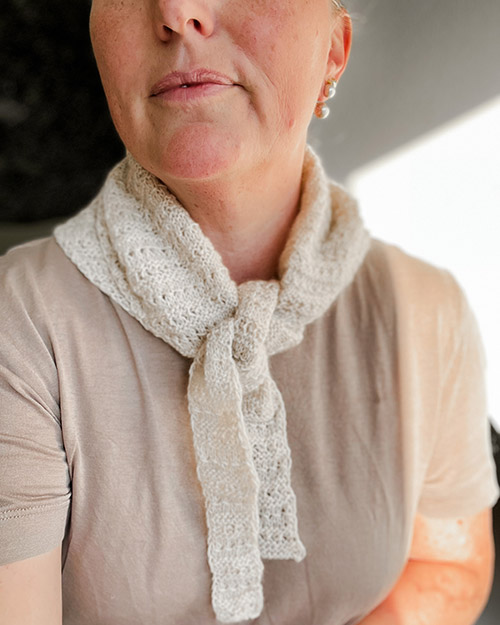 Scouts Grace Scarf er et smukt og vendbart tørklæde designet af Dorte Bak Knitting.