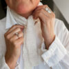 Designet kombinerer klassiske retriller med let struktur og en tidløs form, som kan bruges hele året. Modellen kan styles på mange måder – som halstørklæde, let sjal eller elegant accessory til frakken.