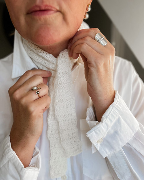Det færdige resultat afhænger af garnvalget: silke giver et blankt og elegant look, kashmir et ultralet og luksuriøst udtryk, mens merino tilfører blødhed og fleksibilitet. Uanset valg af materiale får du et klassisk og anvendeligt tørklæde, der passer både til hverdagsbrug og mere formelle lejligheder.