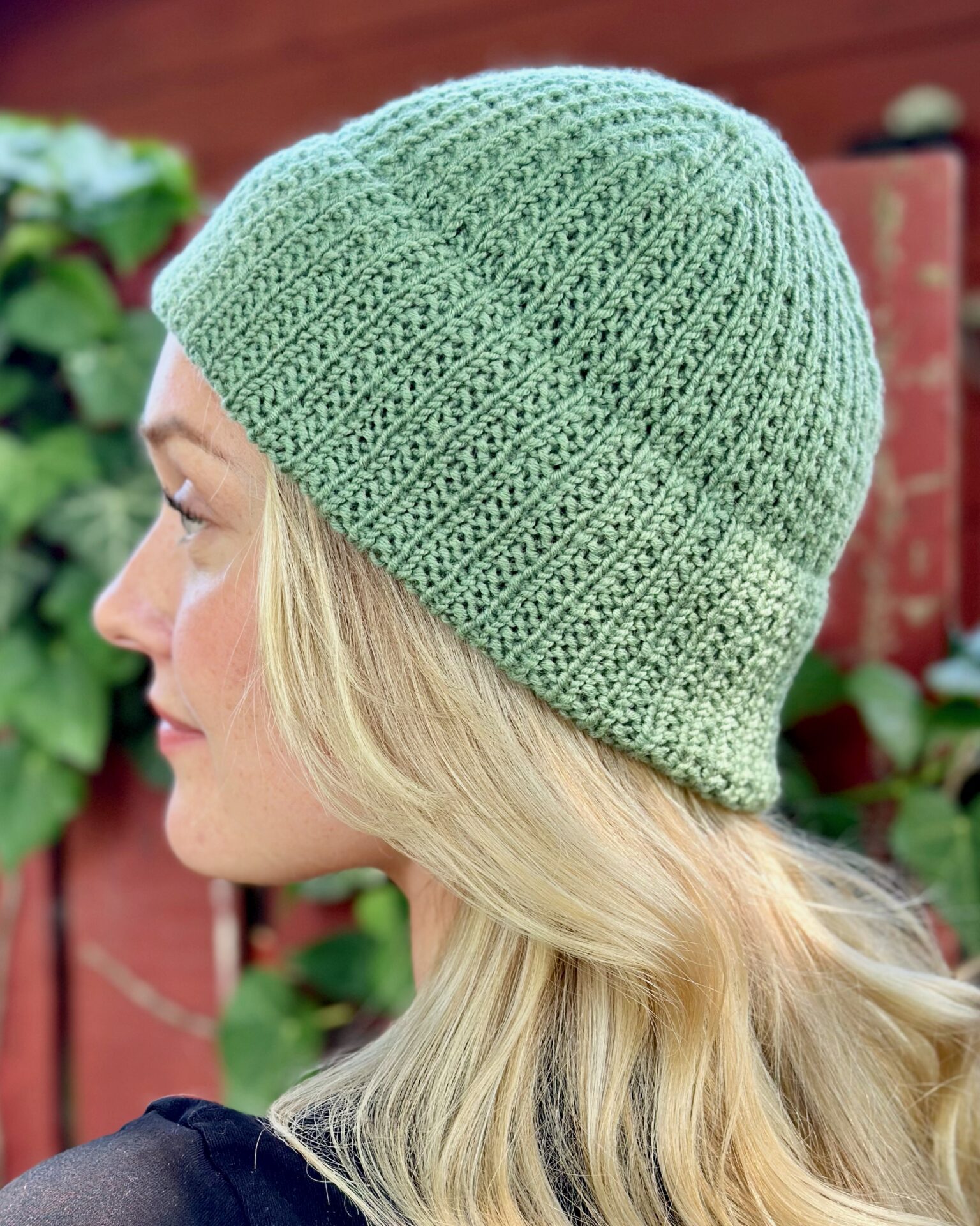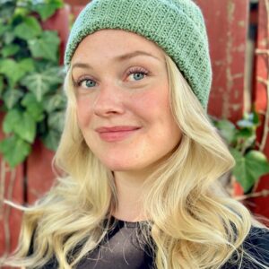 Seed Beanie af Knitlidt er en varm hat, der især er velegnet til vinterbrug. Huen er strikket i perlerib med en bred foldet kant, som udgør næsten halvdelen af huen, og derfor har den en fin rund form. Huen udvider sig en smule efter vask og ved almindelig brug.