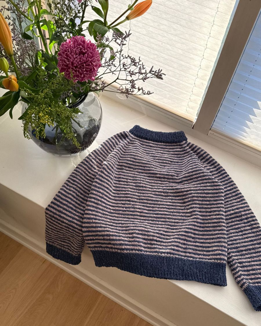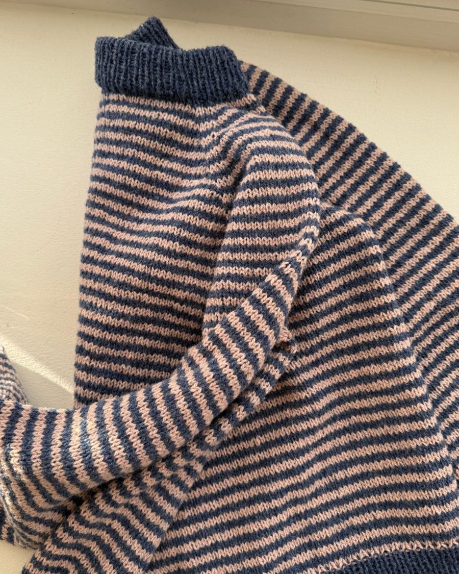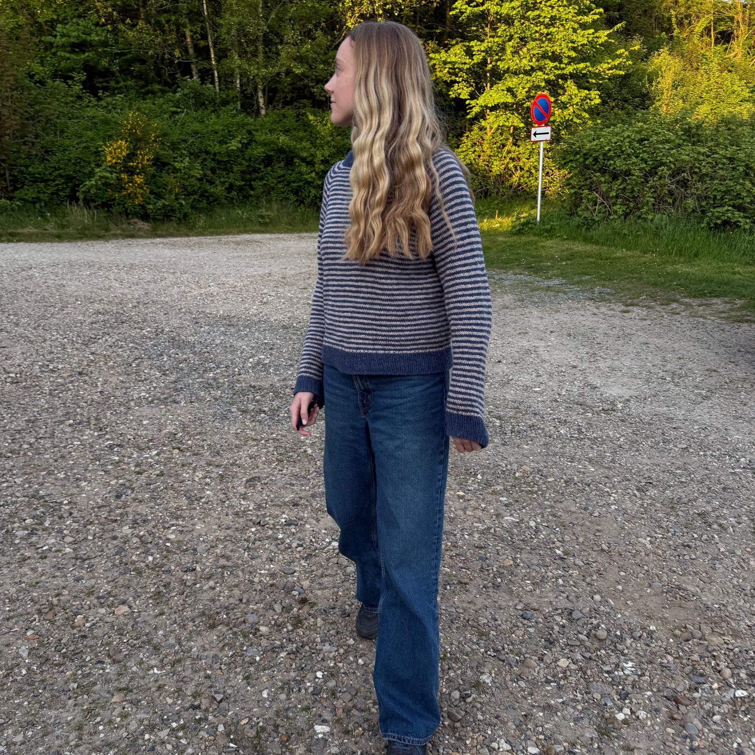 Der strikkes med rundpind 4 mm (40–100 cm) til kroppen og ærmerne og 3,5 mm pinde til halskant og rib. Der kan bruges strømpepinde eller rundpind til ærmer afhængig af præference.