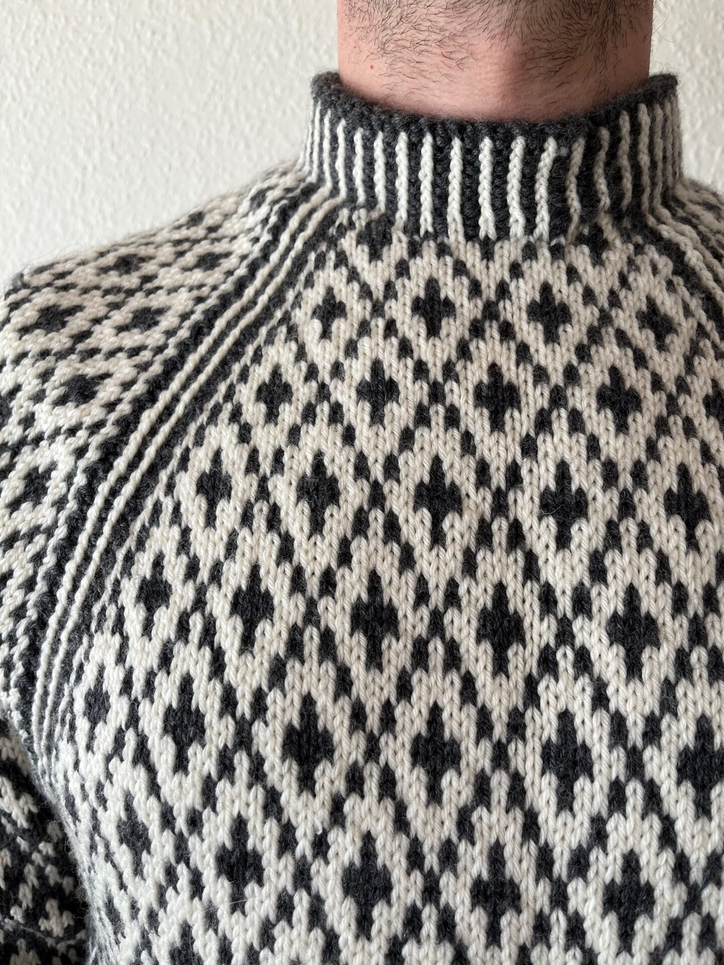 Shackleton Sweater fra Knit And Relax er den perfekte sweater at strikke til mænd. Sweateren er strikket i et super flot mønster og flotte raglan ærmer.