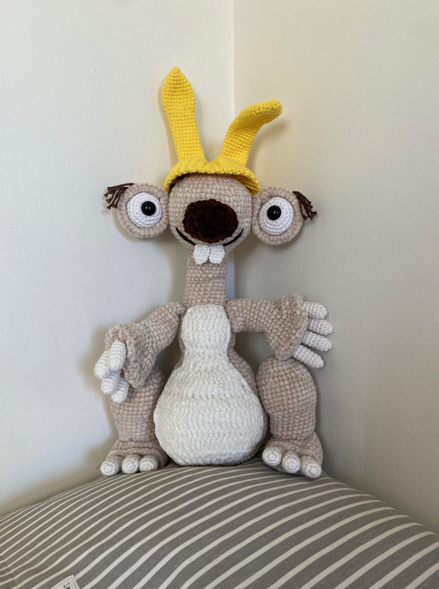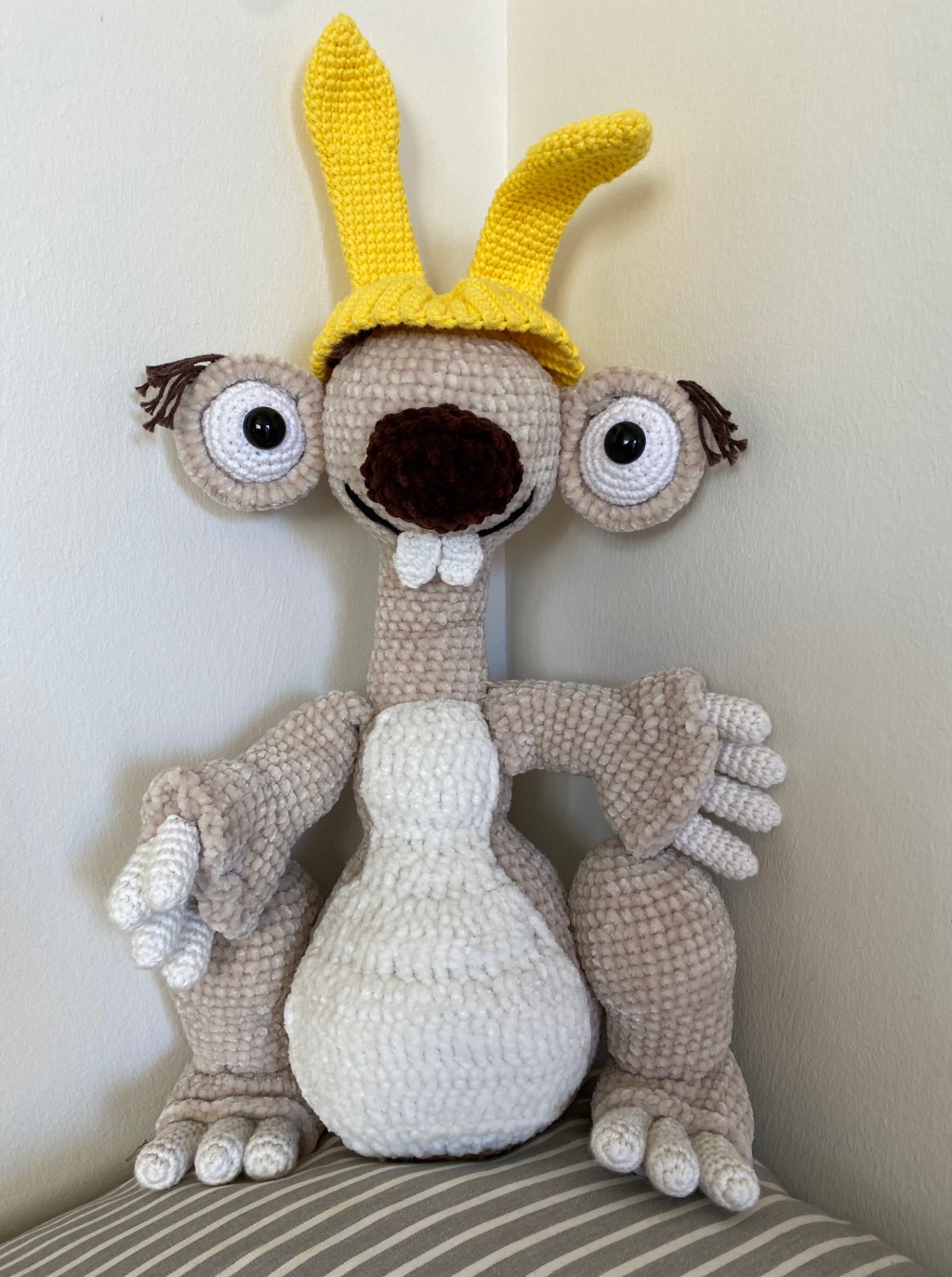 Skab din egen charmerende og skæve Sid med kaninører – en elskelig hæklefigur inspireret af den kendte karakter fra Ice Age-filmene. Denne unikke bamse måler ca. 40 cm i højden og kombinerer humor og hygge med et sjovt og karakteristisk udtryk. Med sine store øjne, nuttede tænder og en fin hue med kaninører, bliver Sid hurtigt familiens nye yndling.