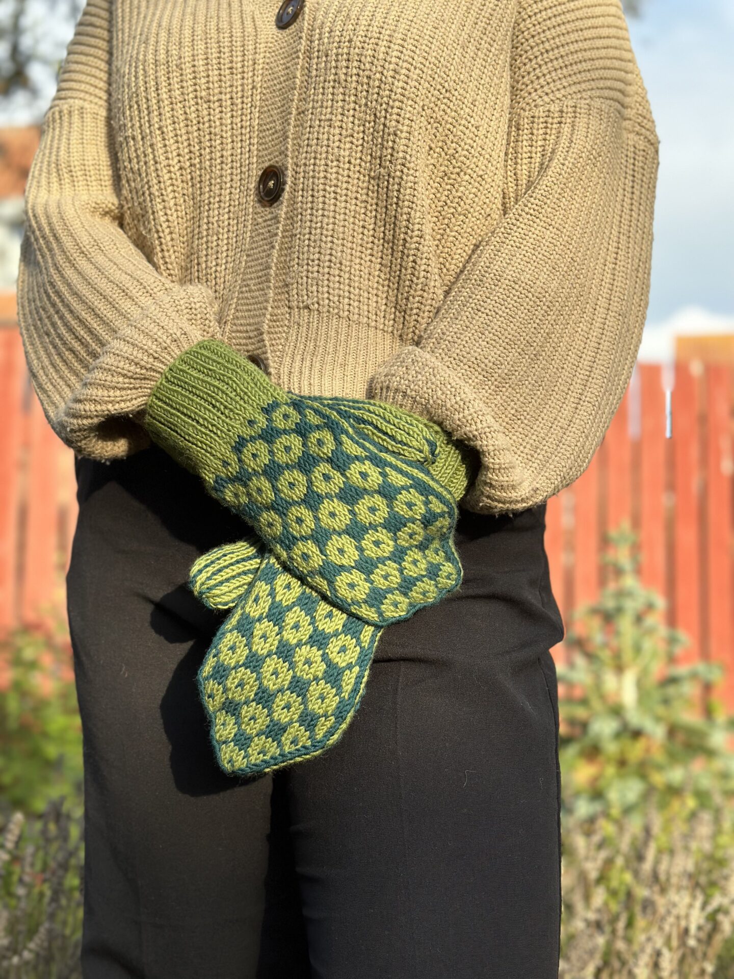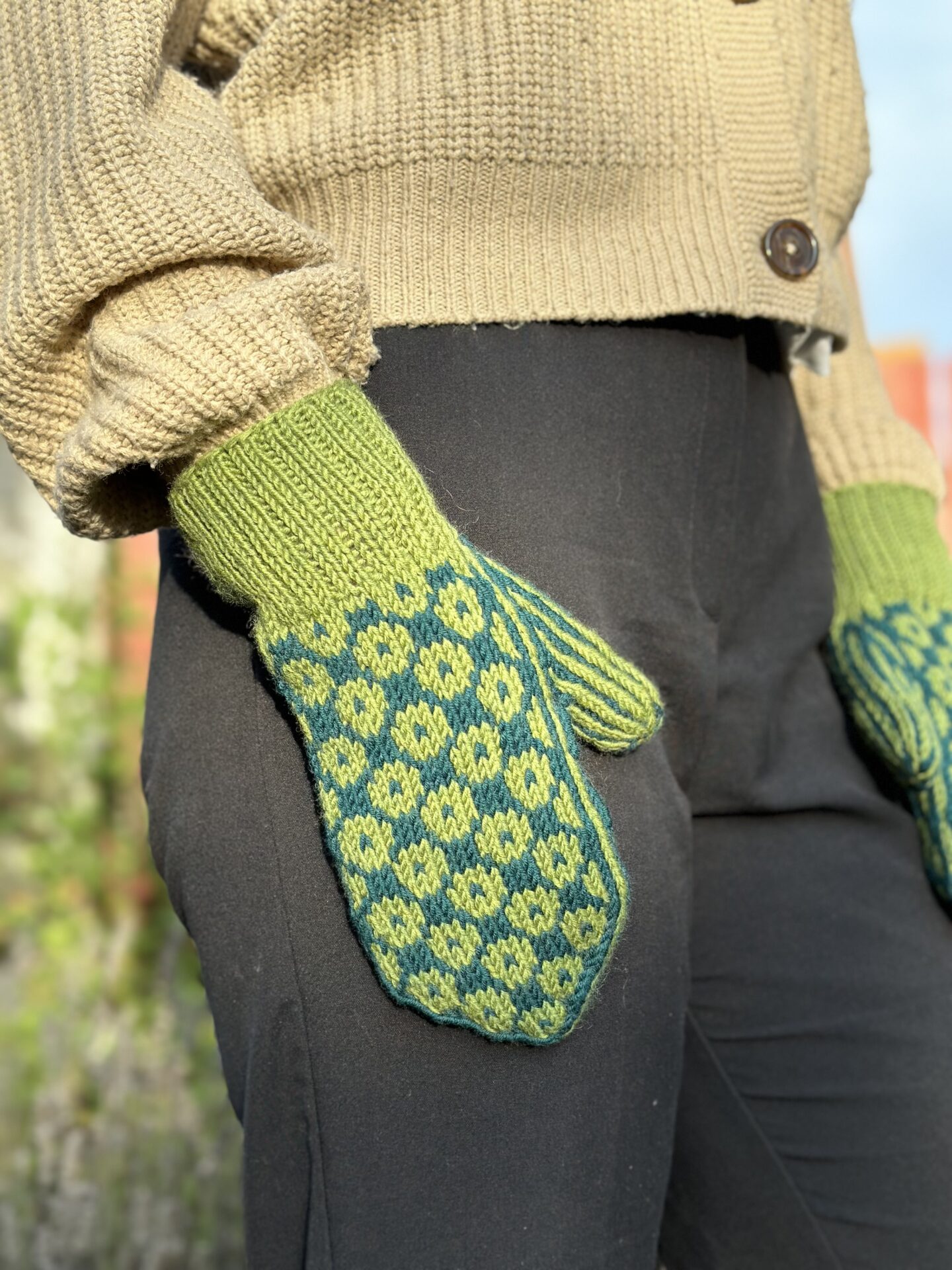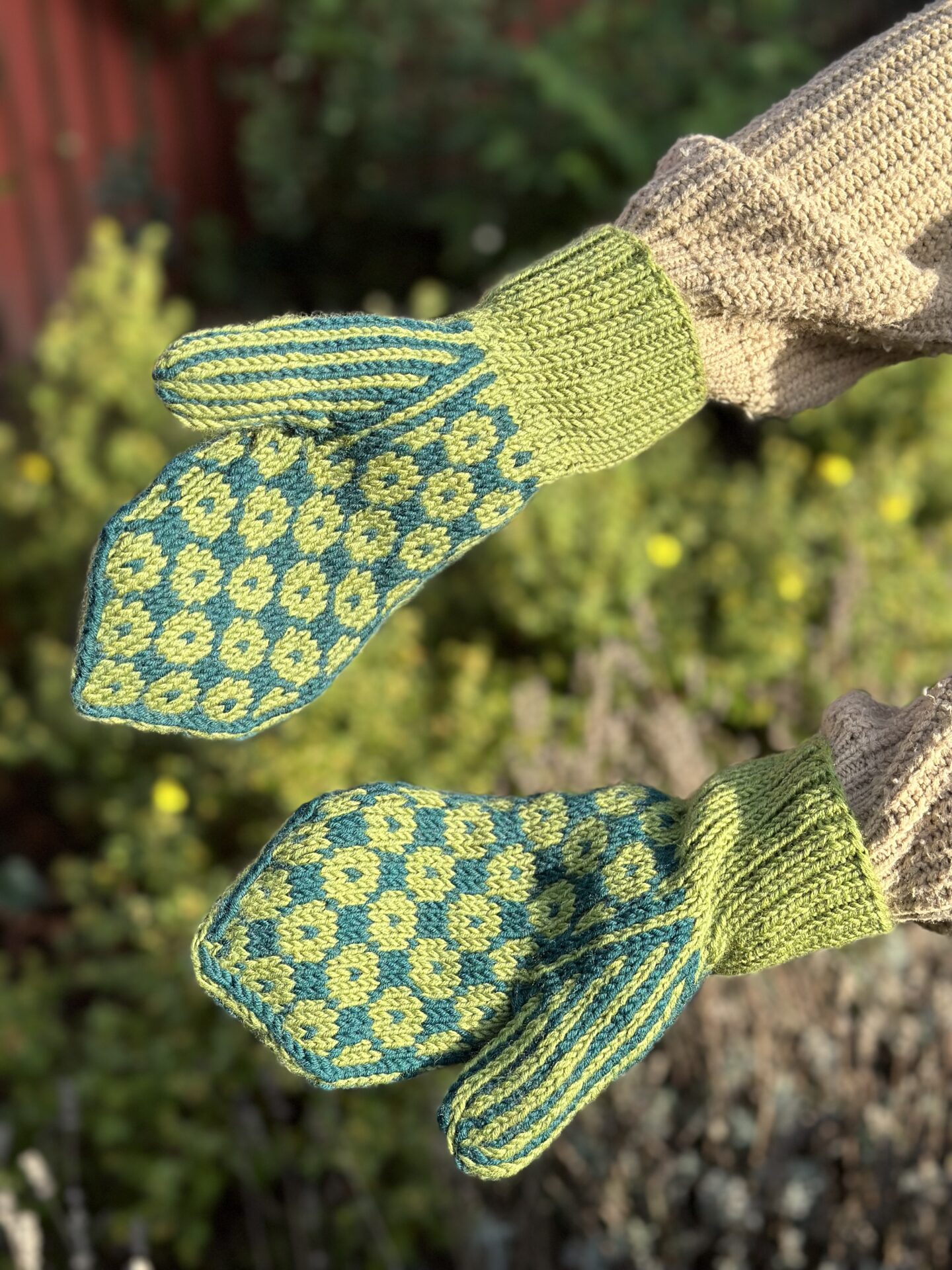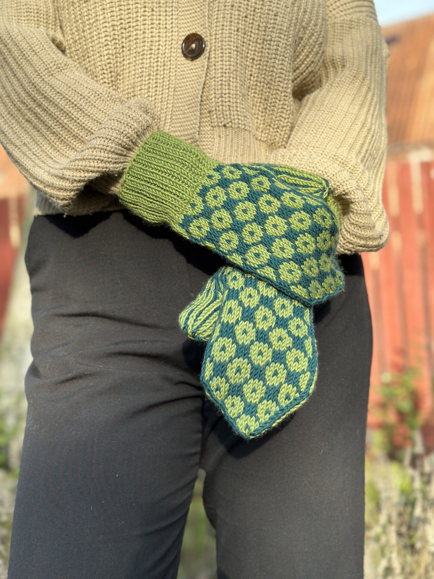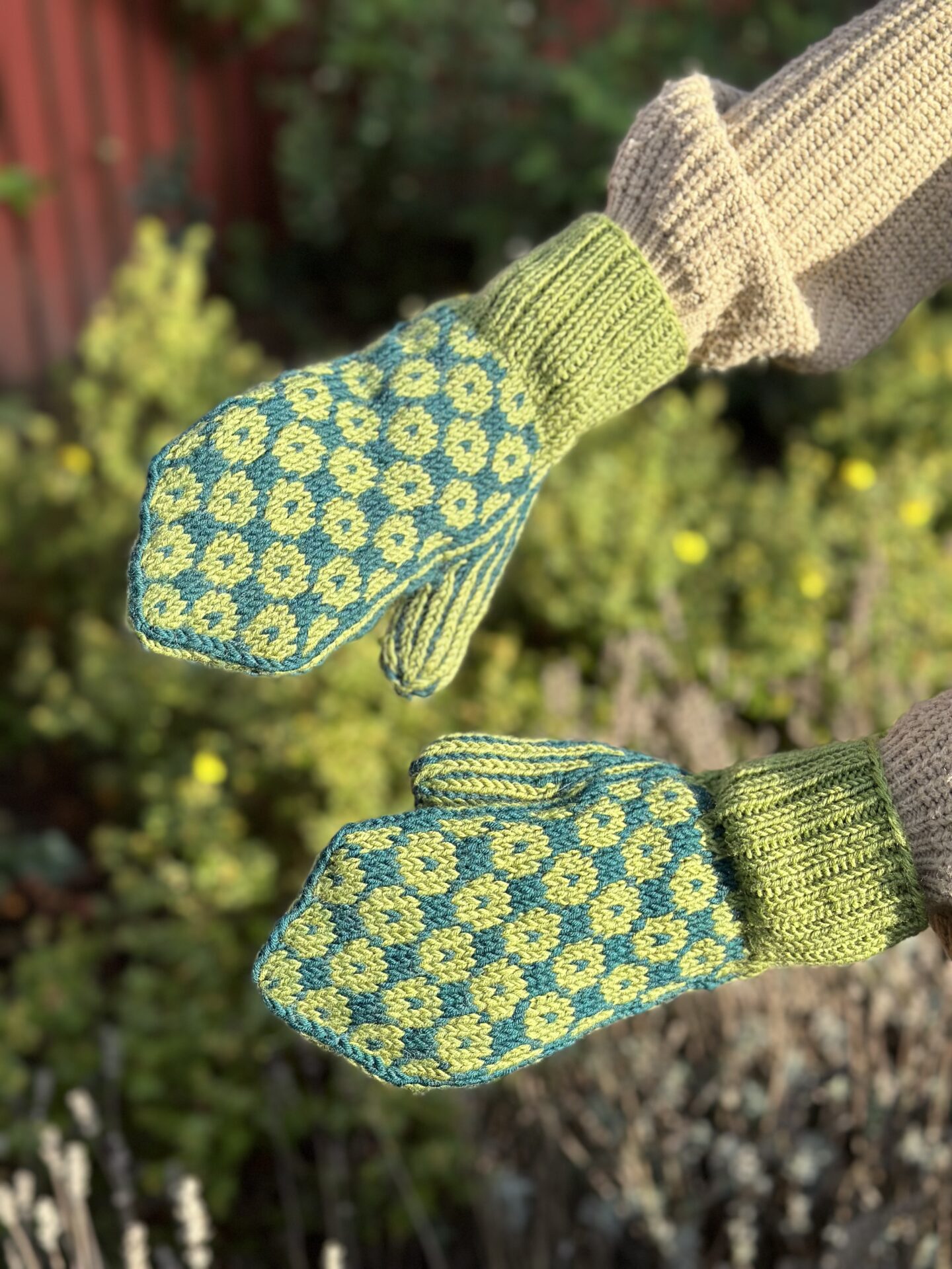 Siri Mittens er et par unisex luffer perfekt til efterår og vinter. Siri Mittens har et blomstermønster og er inspireret af et af de mange traditionelle færøske mønstre.