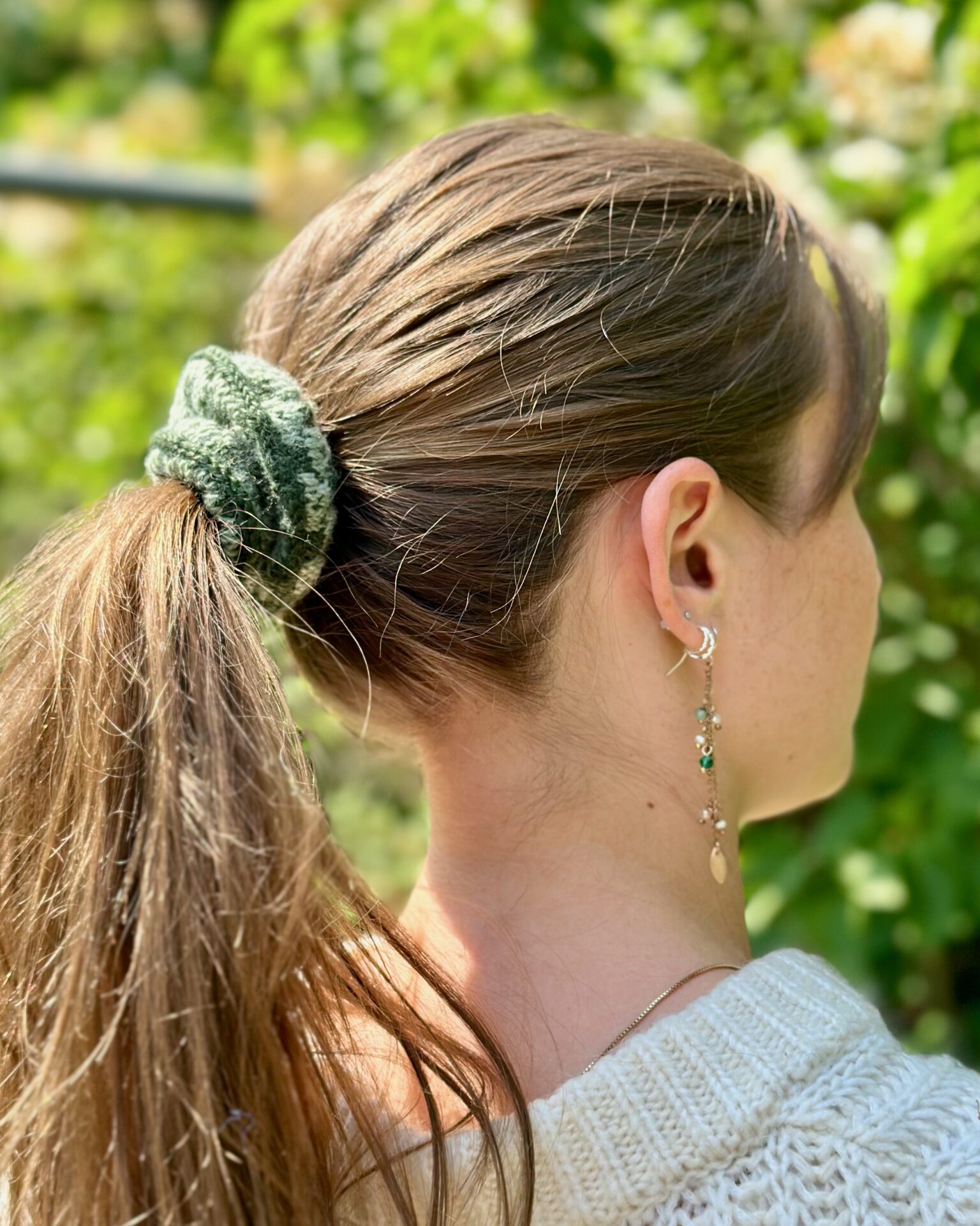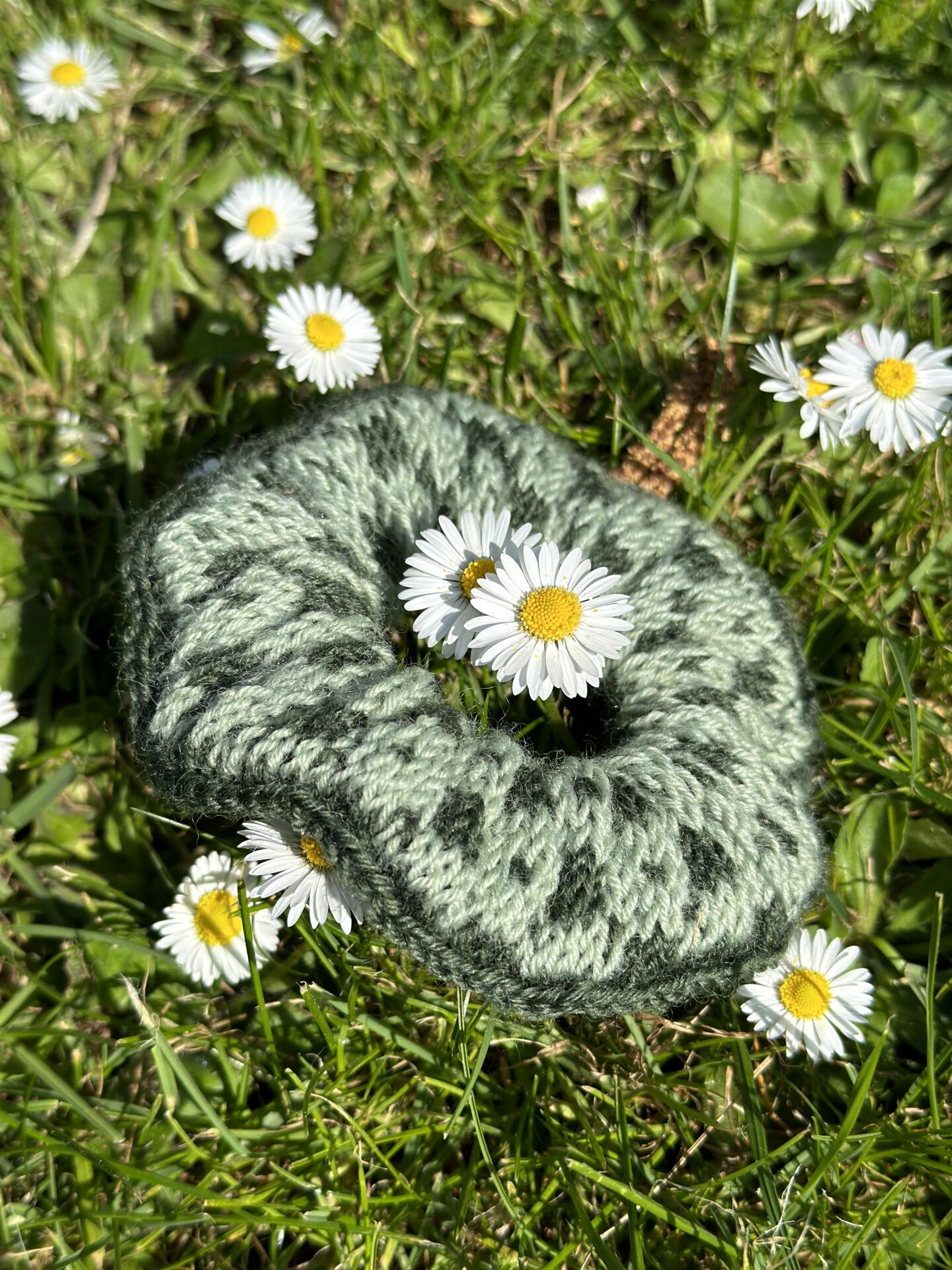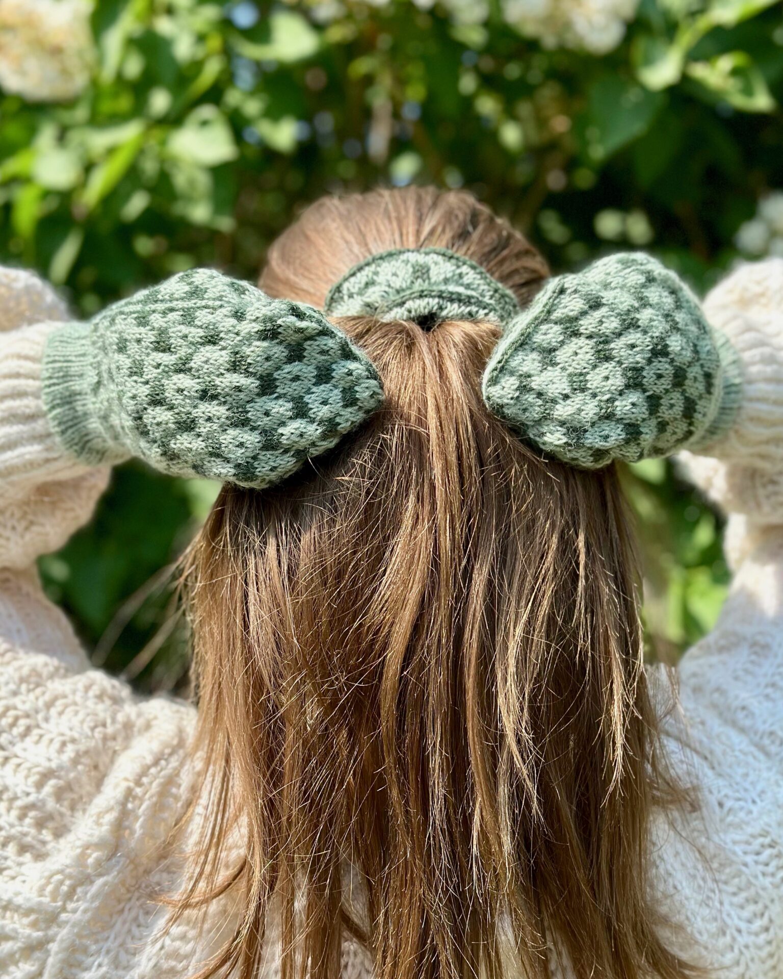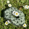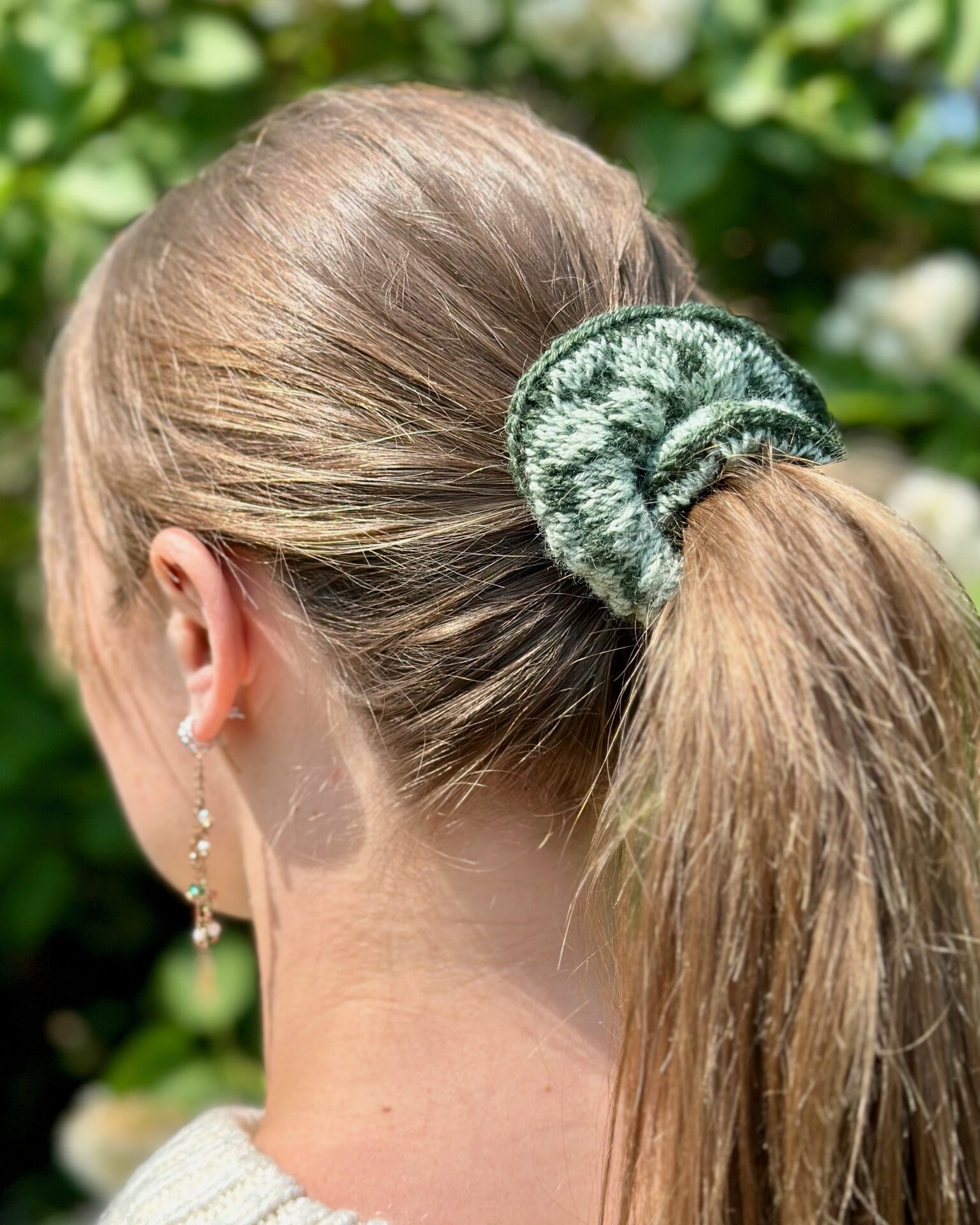 Siri Scrunchie er en hårelastik lavet med et blomstermønster inspireret af et traditionelt færøsk mønster. Hårelastikken holder håret godt på plads, da den har en elastik indeni.