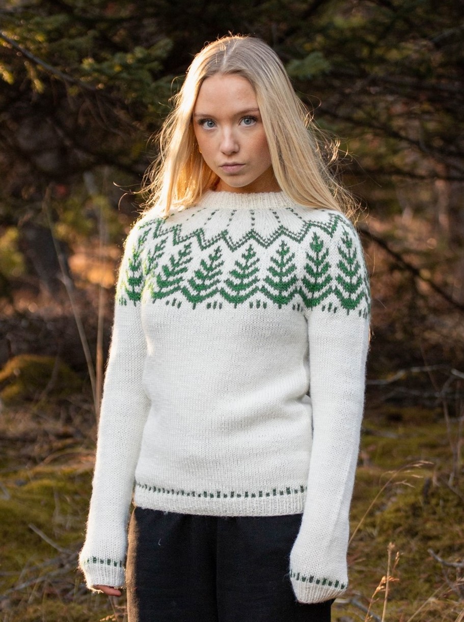 Sitkagreni Sweater er en oplagt klassiker for den, der elsker islandsk strik. Kombinationen af det bløde, men slidstærke uldgarn og det traditionelle bærestykke gør sweateren velegnet til både hverdagsbrug og udendørsaktiviteter i køligere klima. Det er en sweater, der både giver varme og stil og som vil holde i mange år.